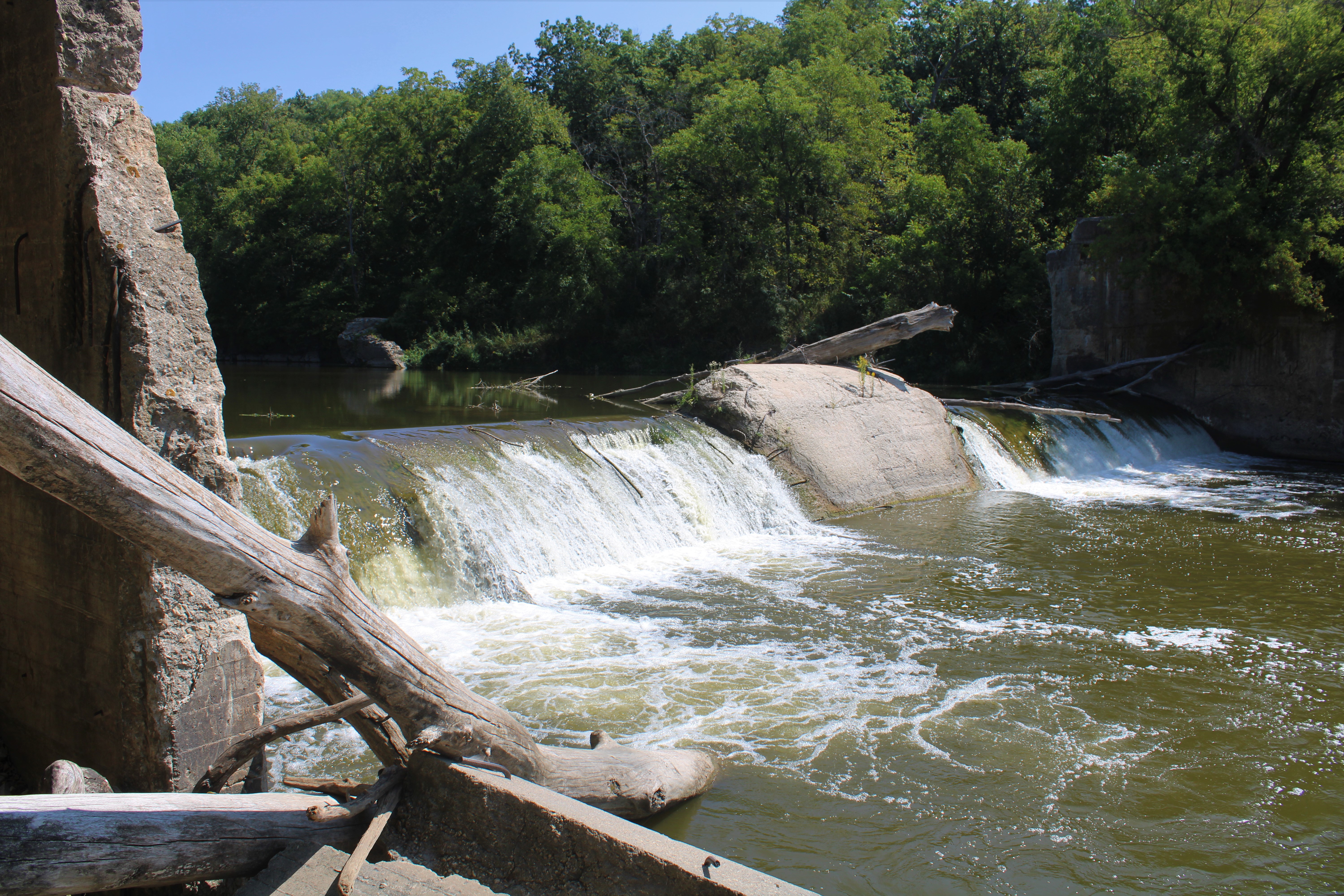 Close shot of the upper dam on the Upper Iowa River which is 45.1 miles from the Mississippi River.