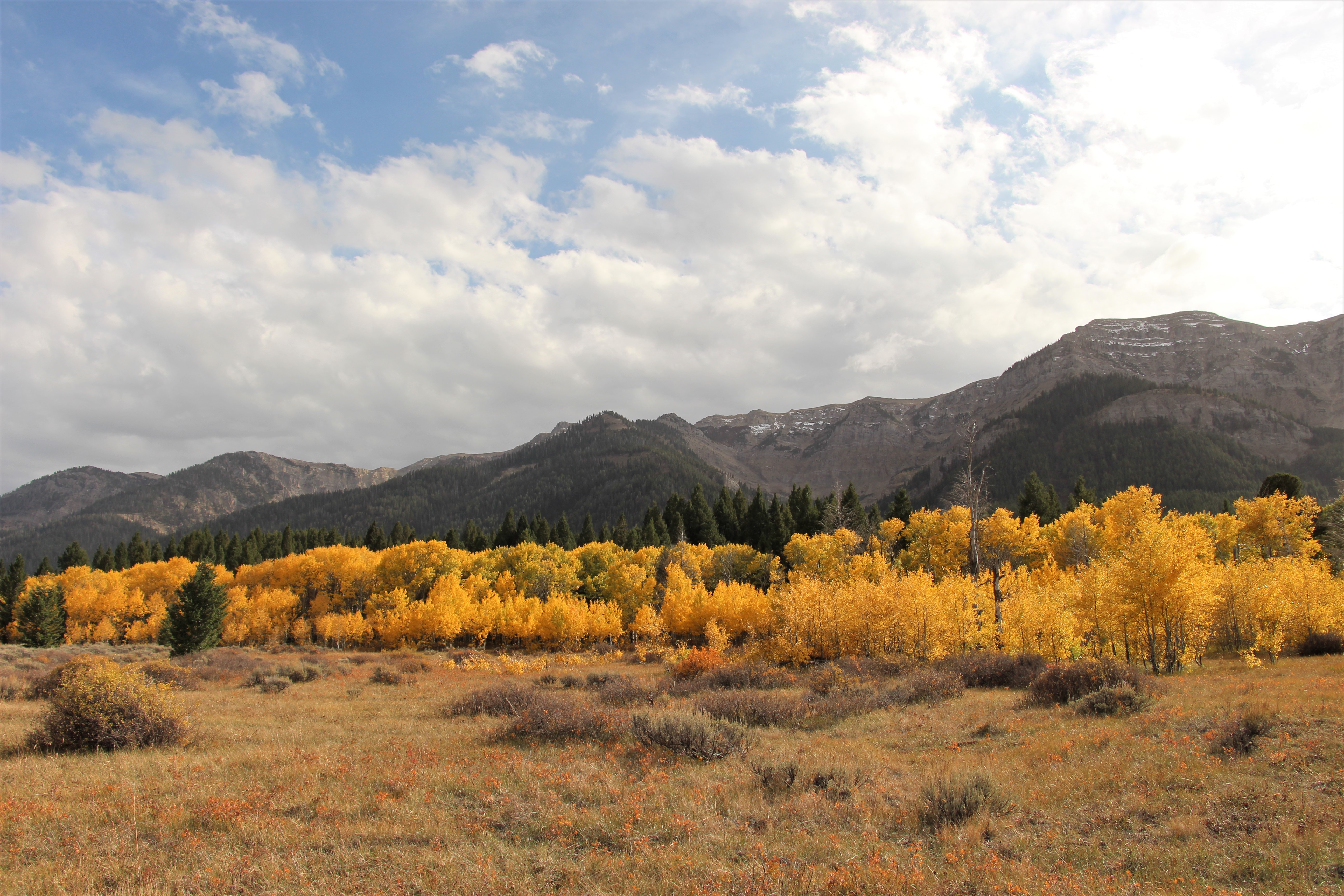 Bright yellow aspens are at the forefront of the Centennial Mountains with a mixture of sun, blue skies, and clouds at Red Rock Lakes National Wildlife Refuge. Photo by Cortez Rohr/USFWS.
