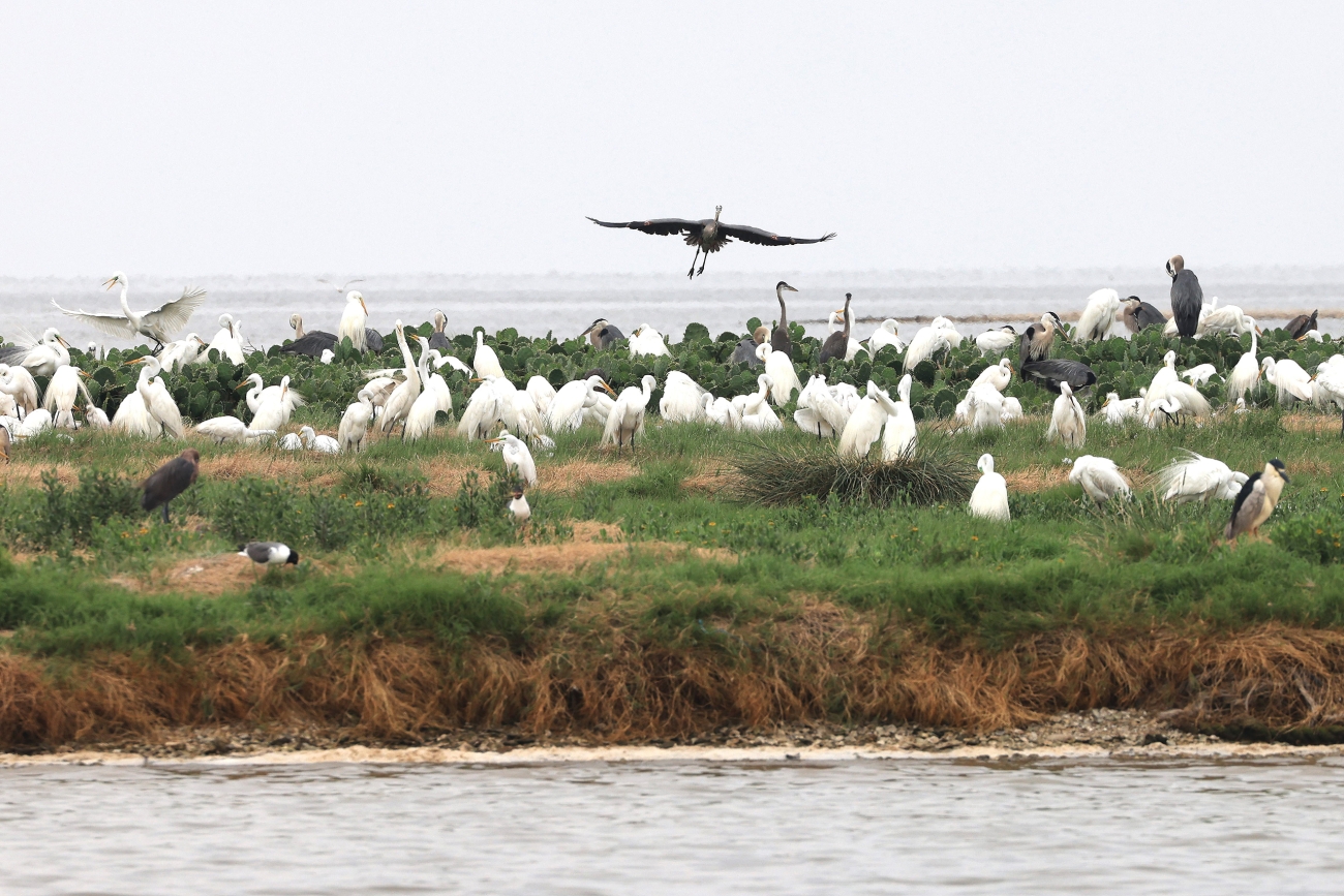 Colonial waterbirds (mostly great egrets pictured) nest in groups on the low-laying island of Dressing Point, found along the Texas coast. Also pictured are snowy egret, great blue heron, black-crowned night heron, laughing gull and at least one reddish egret.