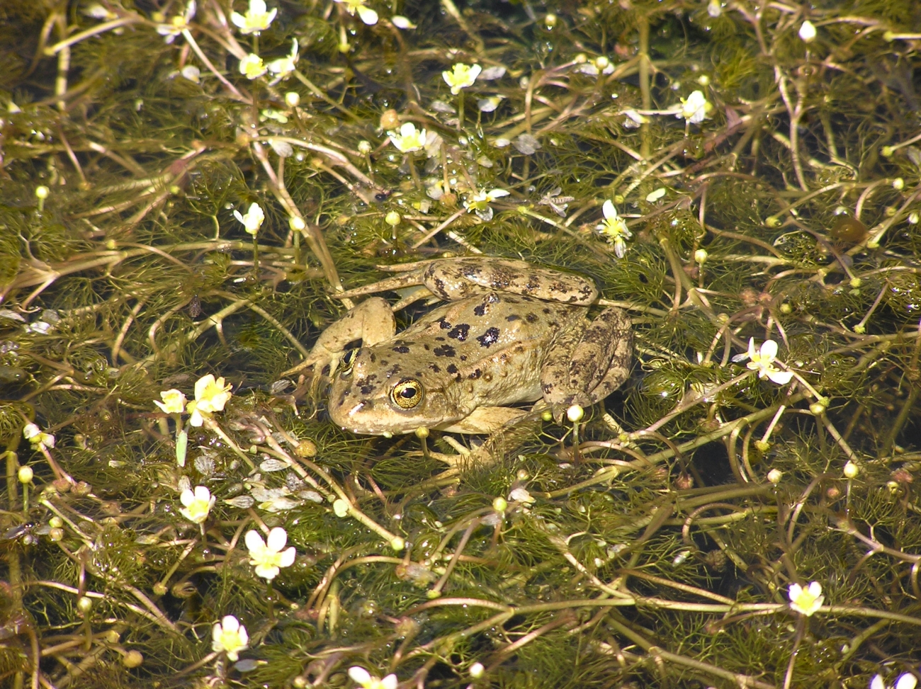 The coloration of a Columbia spotted frog makes finding and catching them a difficult task.