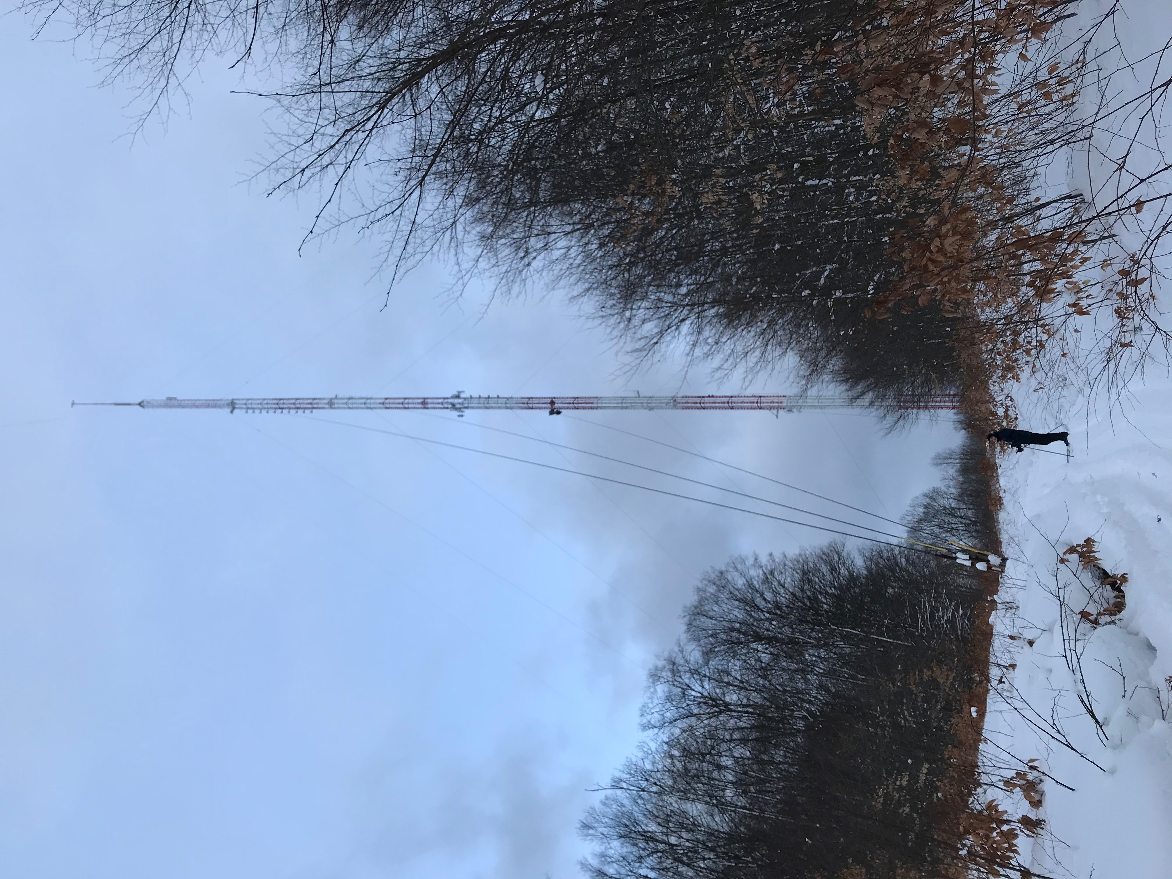This communication tower on the U.S. Forest Service Huron-Manistee National Forest in Michigan was the very first tower to change its lights from non-flashing to flashing to help prevent birds from colliding with it.