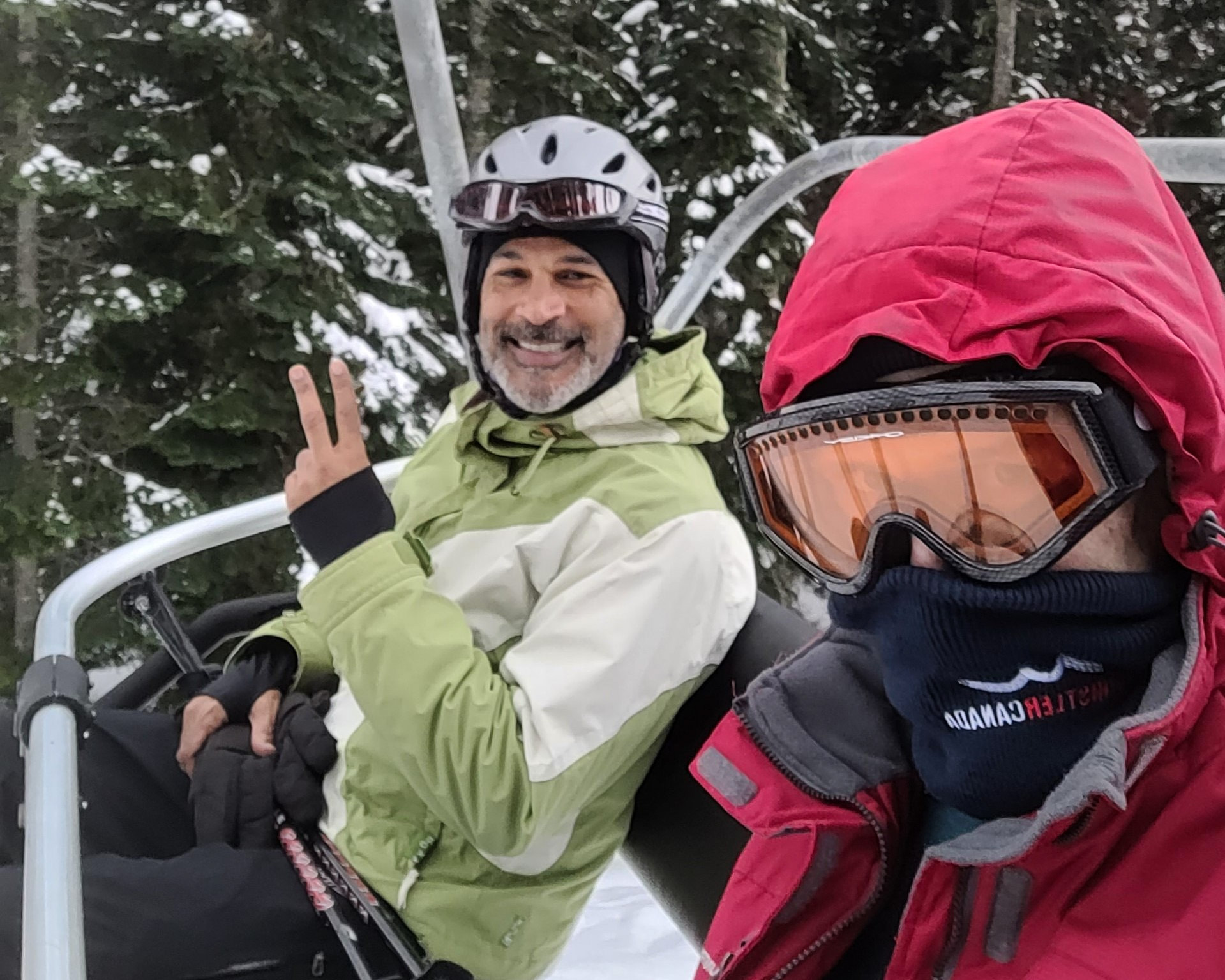 Dan Nehler and his brother on a chairlift at Snoqualmie Pass in Washington