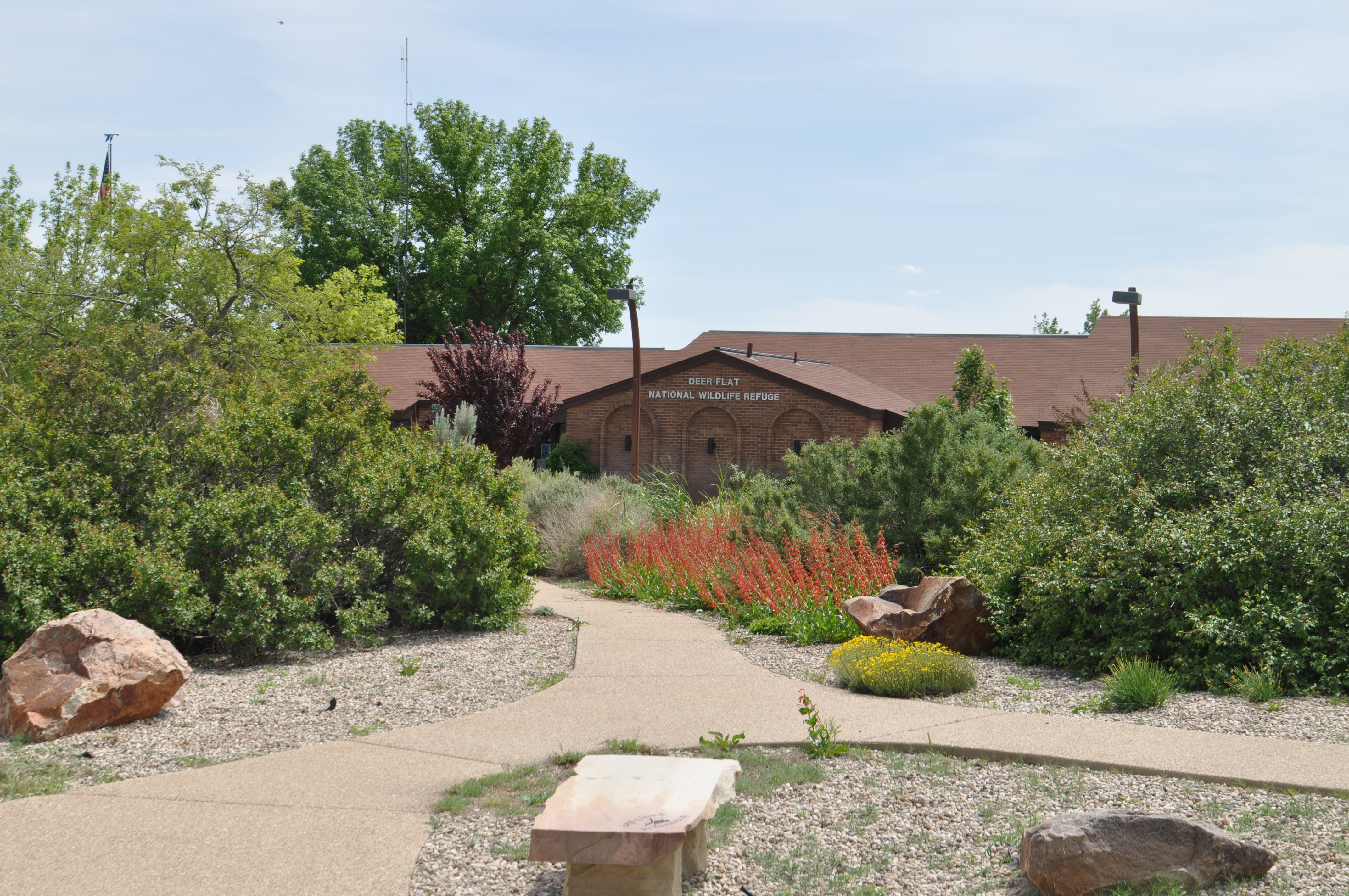 Path through a xeriscape (a landscape that needs little or no water) to the Deer Flat National Wildlife Refuge visitor center in Idaho.