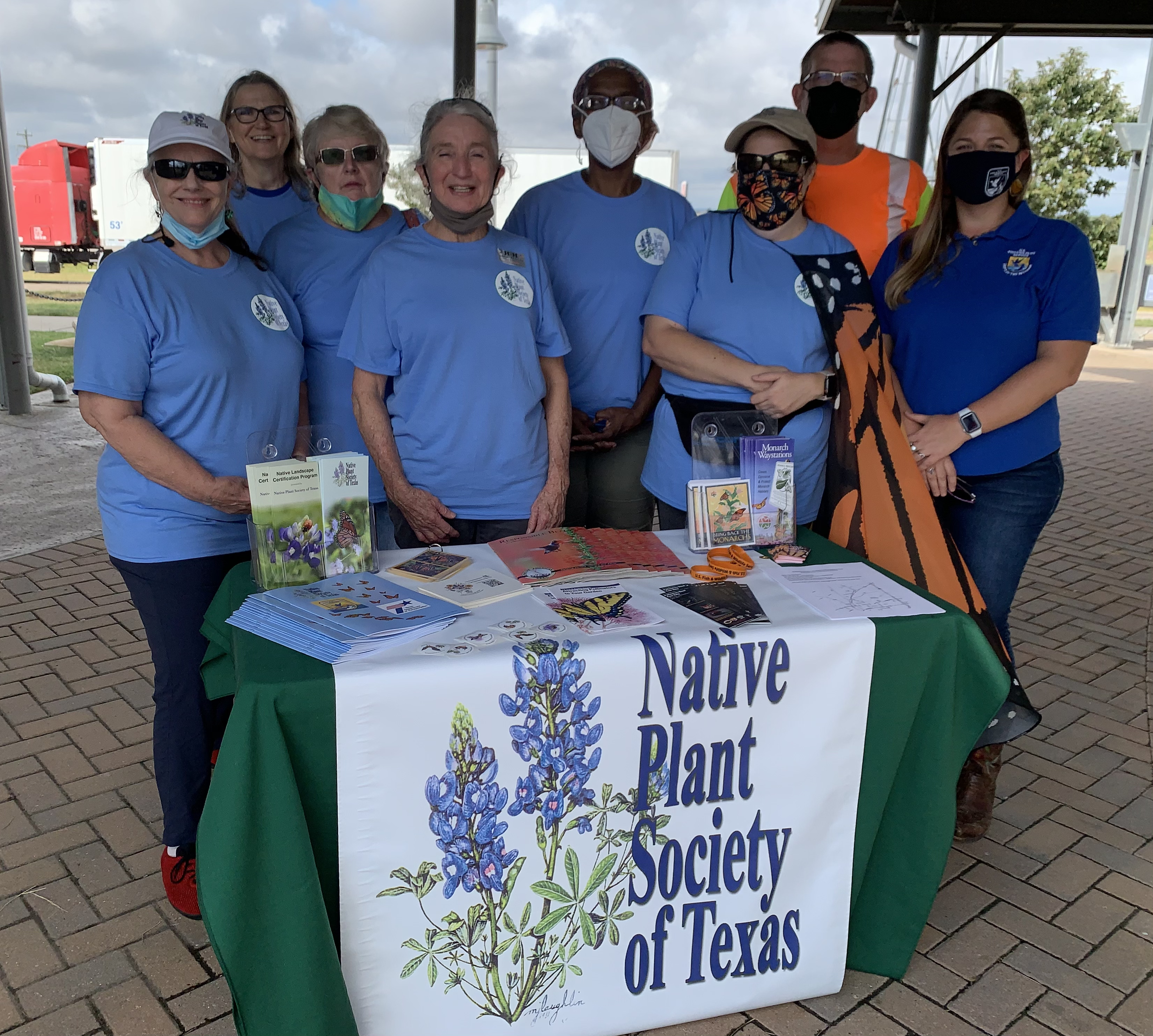 Pictured from left to right: Kim Conrow, Betsy Farris, Carol Beyer, Kay Jenkins, Denise Carter and Corinna Benson with the Native Plant Society of Texas; Brent Johnson with the Texas Department of Transportation; and Katie Boyer with the U.S. Fish and Wildlife Service; at an event to dedicate interpretive signs at the newly established “Monarch Waystation” at the Hill County Southbound Safety Rest Area in Hill County, Texas.
