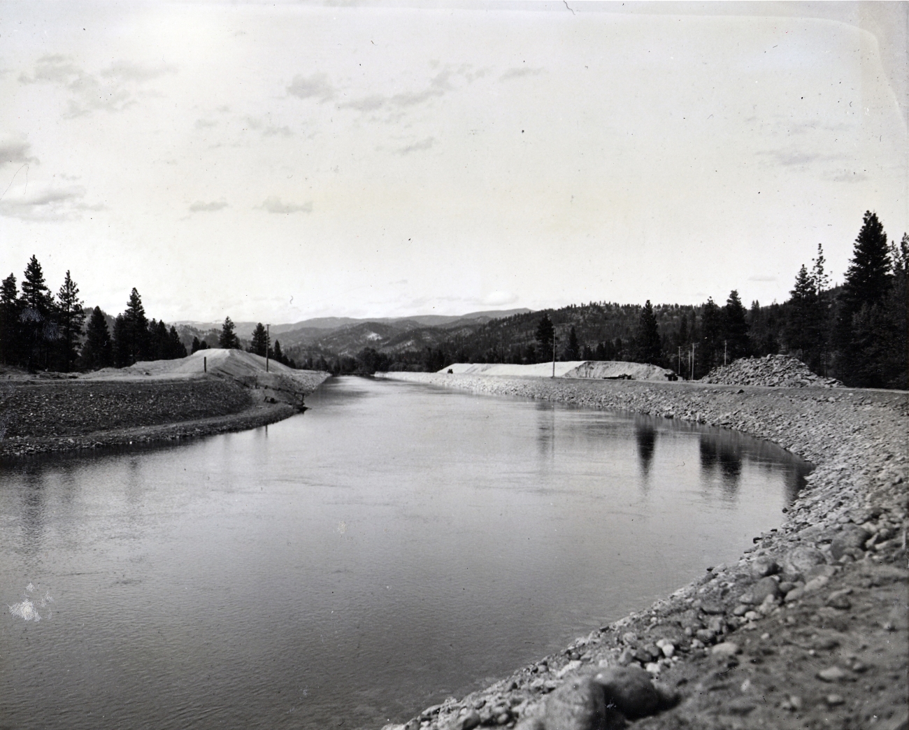 Looking down the newly constructed diversion channel at Leavenworth National Fish Hatchery in May of 1940.