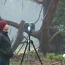 Dr. Louise Allen, of Winston-Salem State University, watches over the LiDAR machine as it scans Lighthouse Field in Santa Cruz, California.