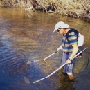 Stewart Reid surveying lamprey habitat in the Santa Margarita River.