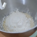 Dry ingredients being added to yeast mixture