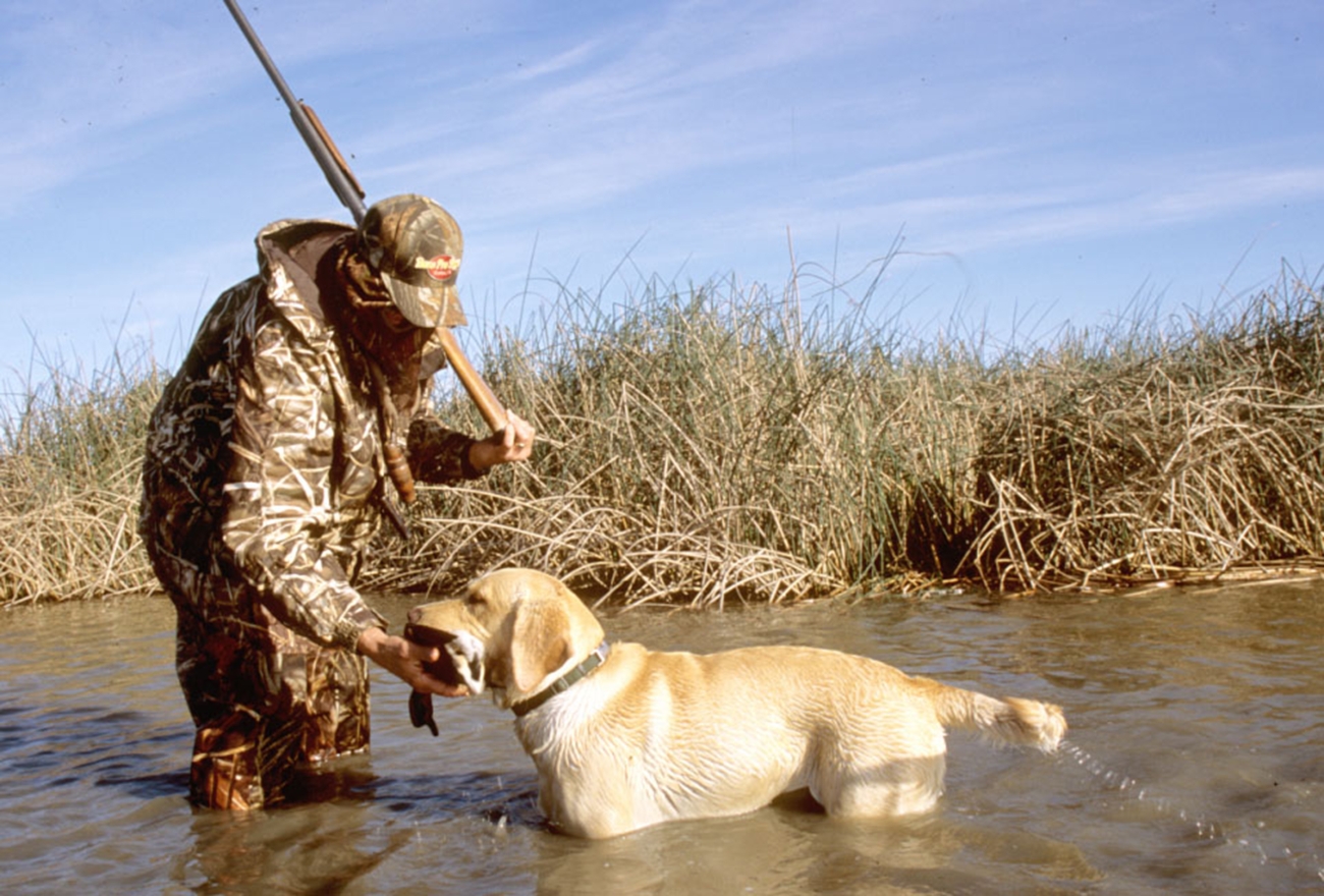 Duck hunter with dog at Sacramento National Wildlife Refuge Complex