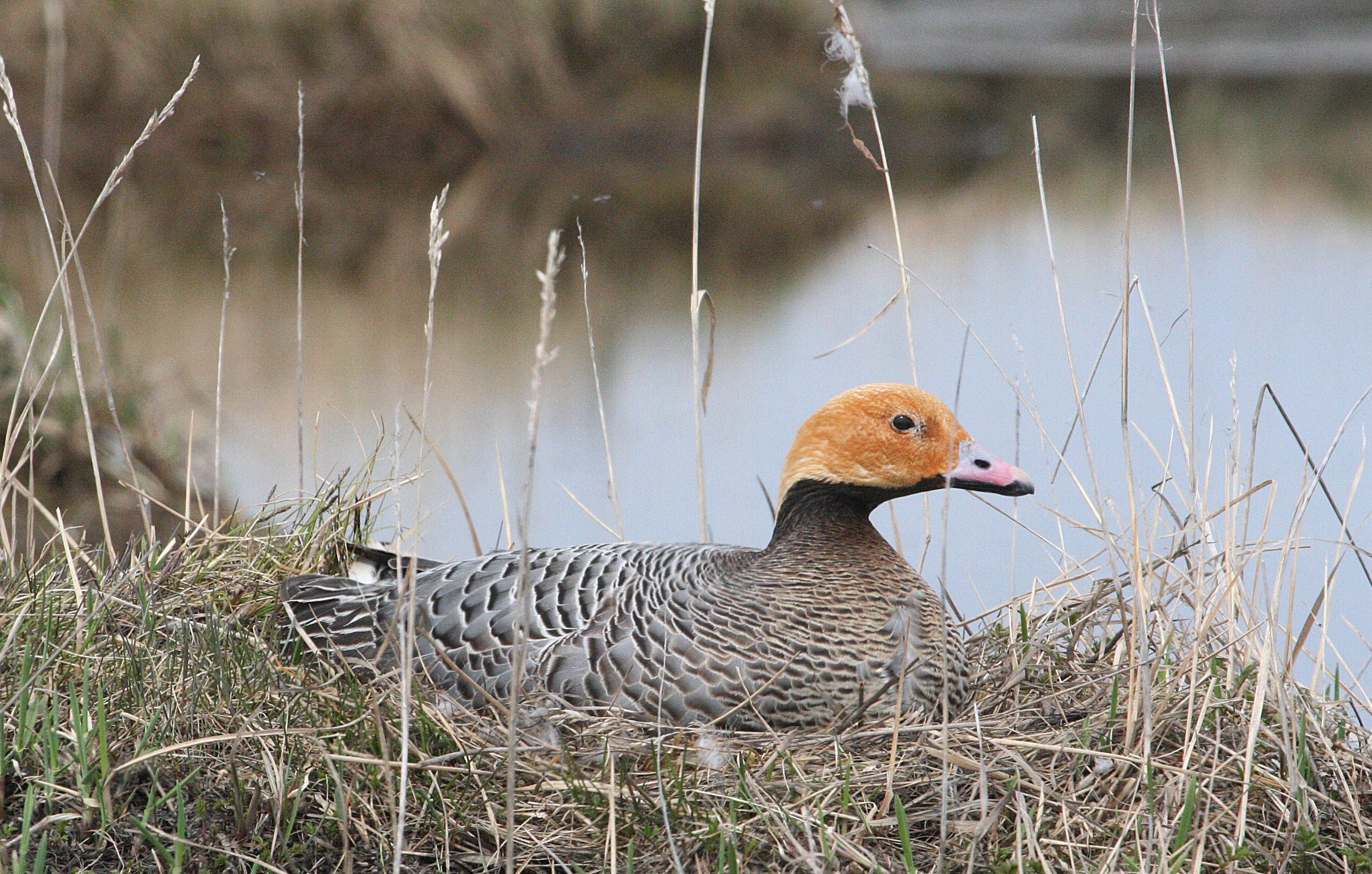 An emperor goose sits on a nest on the tundra of the Yukon-Kuskokwim Delta, Alaska.