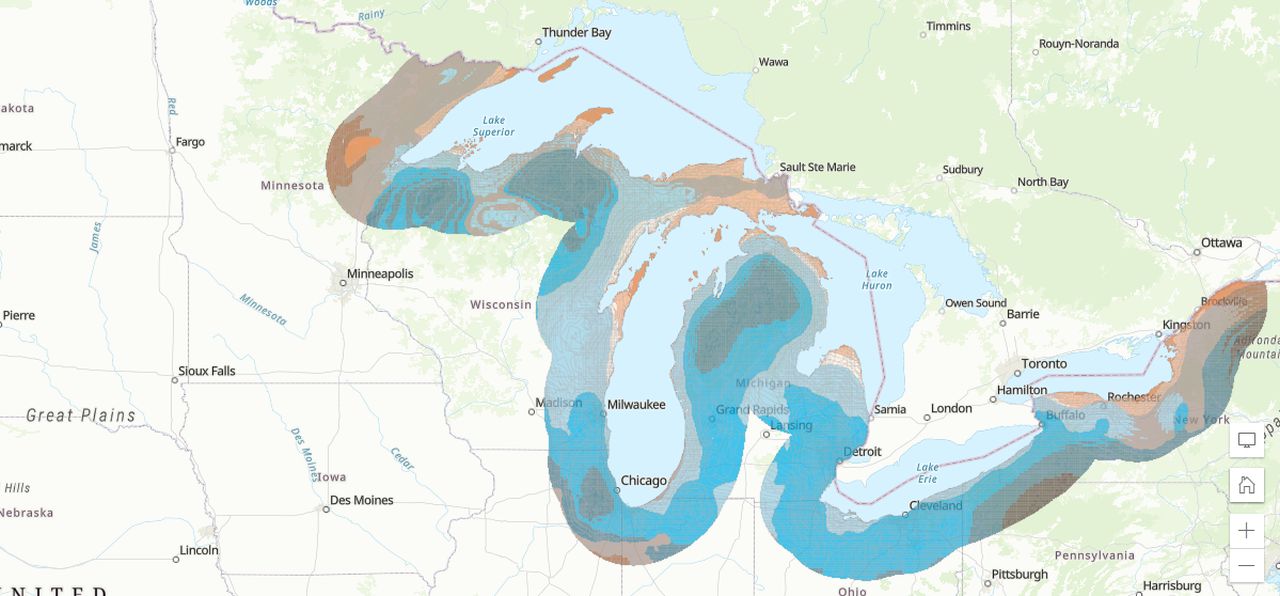 High concentrations of migratory birds are shown in blue during fall migration.