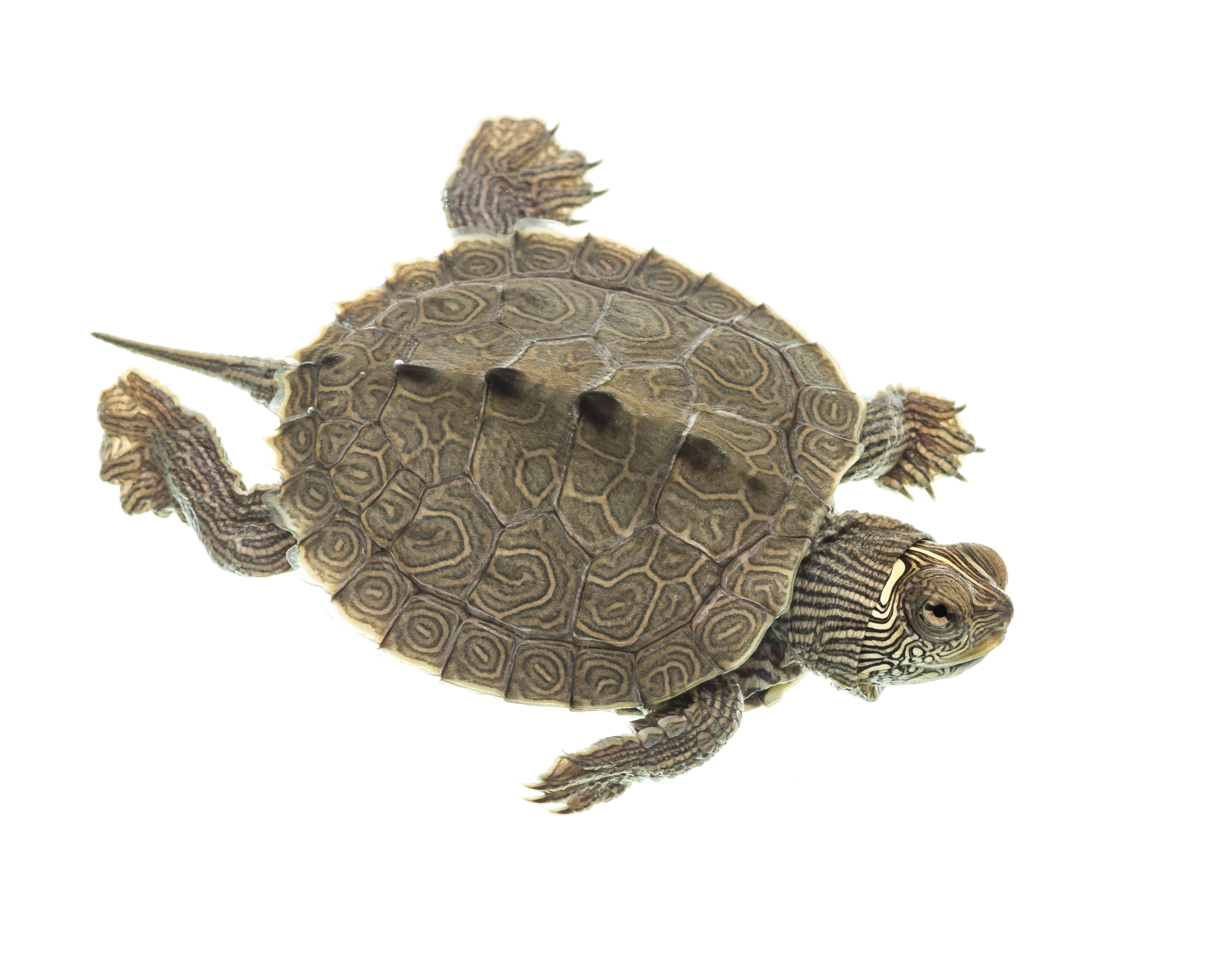 Overhead view of a false map turtle (Graptemys psuedogeographica) photographed at Gavins Point National Fish Hatchery in Yankton, South Dakota.