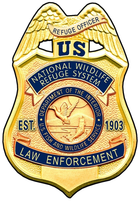 This is the badge worm by a National Wildlife Refuge System law enforcement officer whose title is Federal Wildlife Officer.