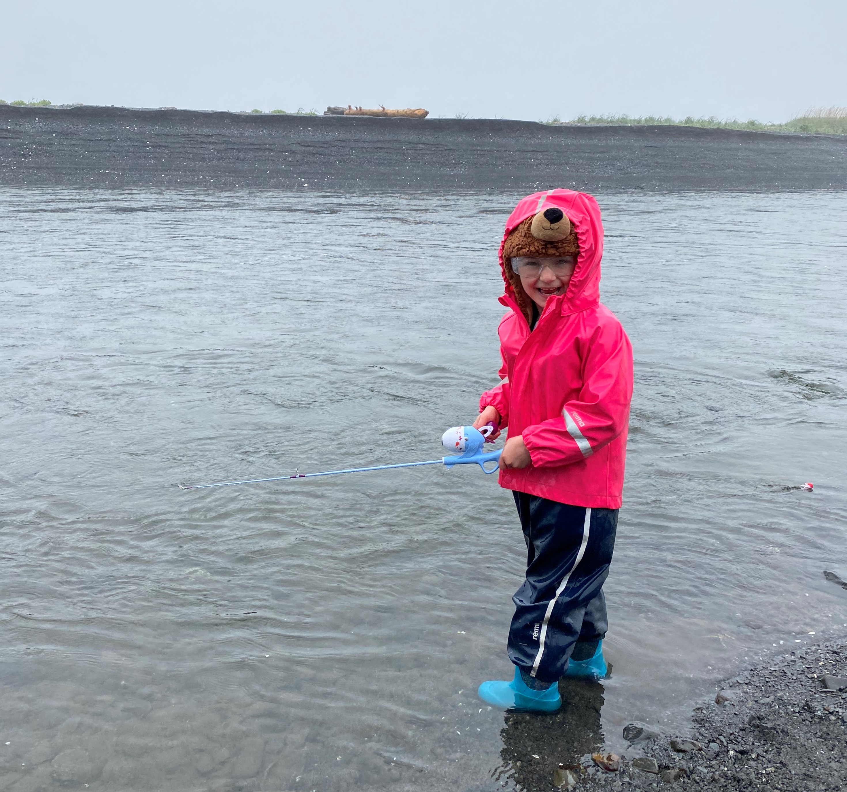 A girl fishes at Salmon Camp at Kodiak National Wildlife Refuge in Alaska.