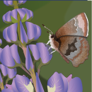 An illustration of a frosted elfin. The frosted elfin is one of several animal ambassadors for the U.S. Fish and Wildlife Service.