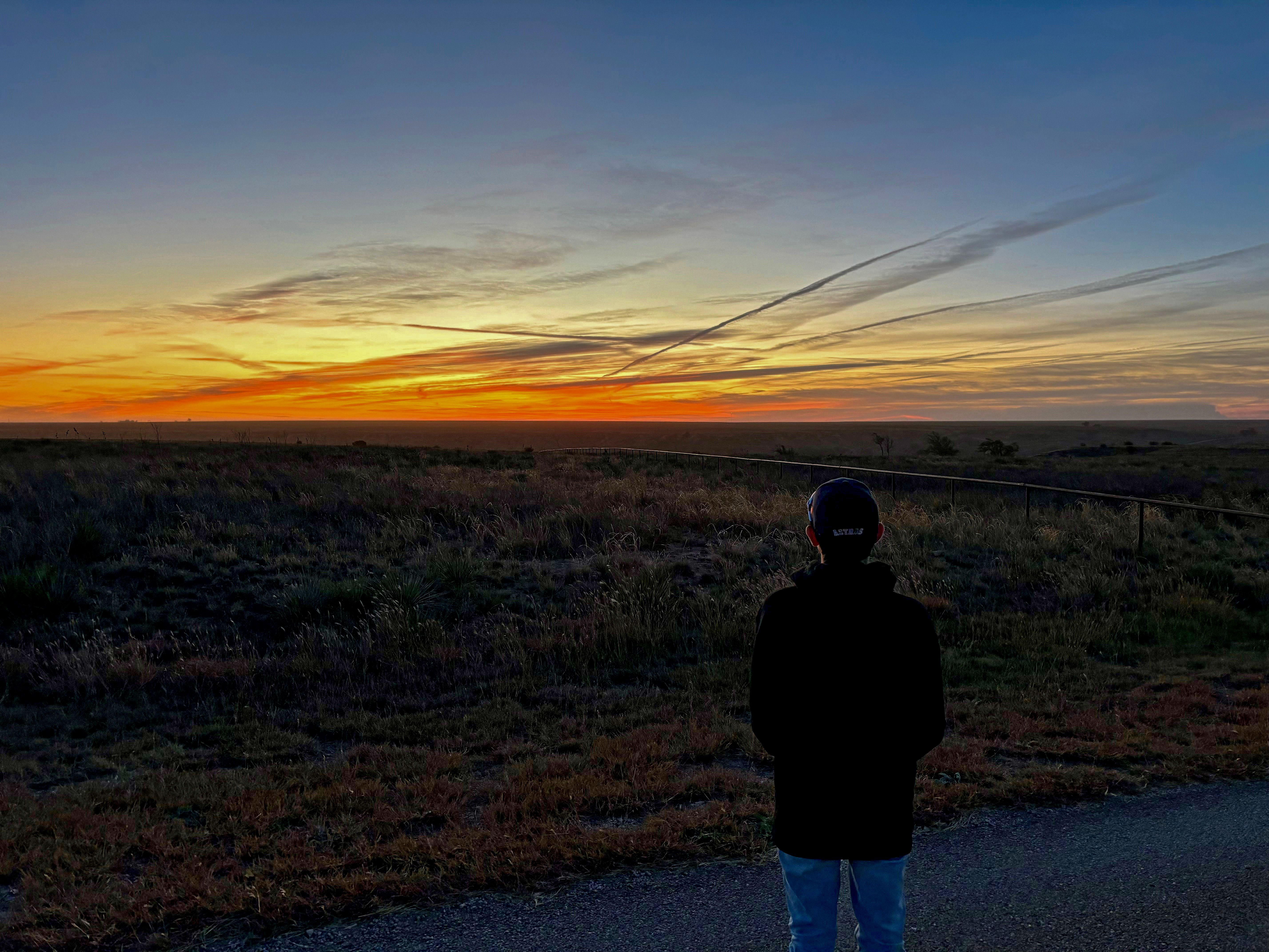 Garrett Gonzales looking off into the sunset at Buffalo Lake National Wildlife Refuge.
