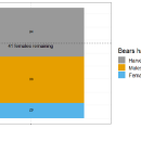 The number of bears that have been harvested (orange & blue) and how many bears remaining that can be harvested (gray) before July 2024.