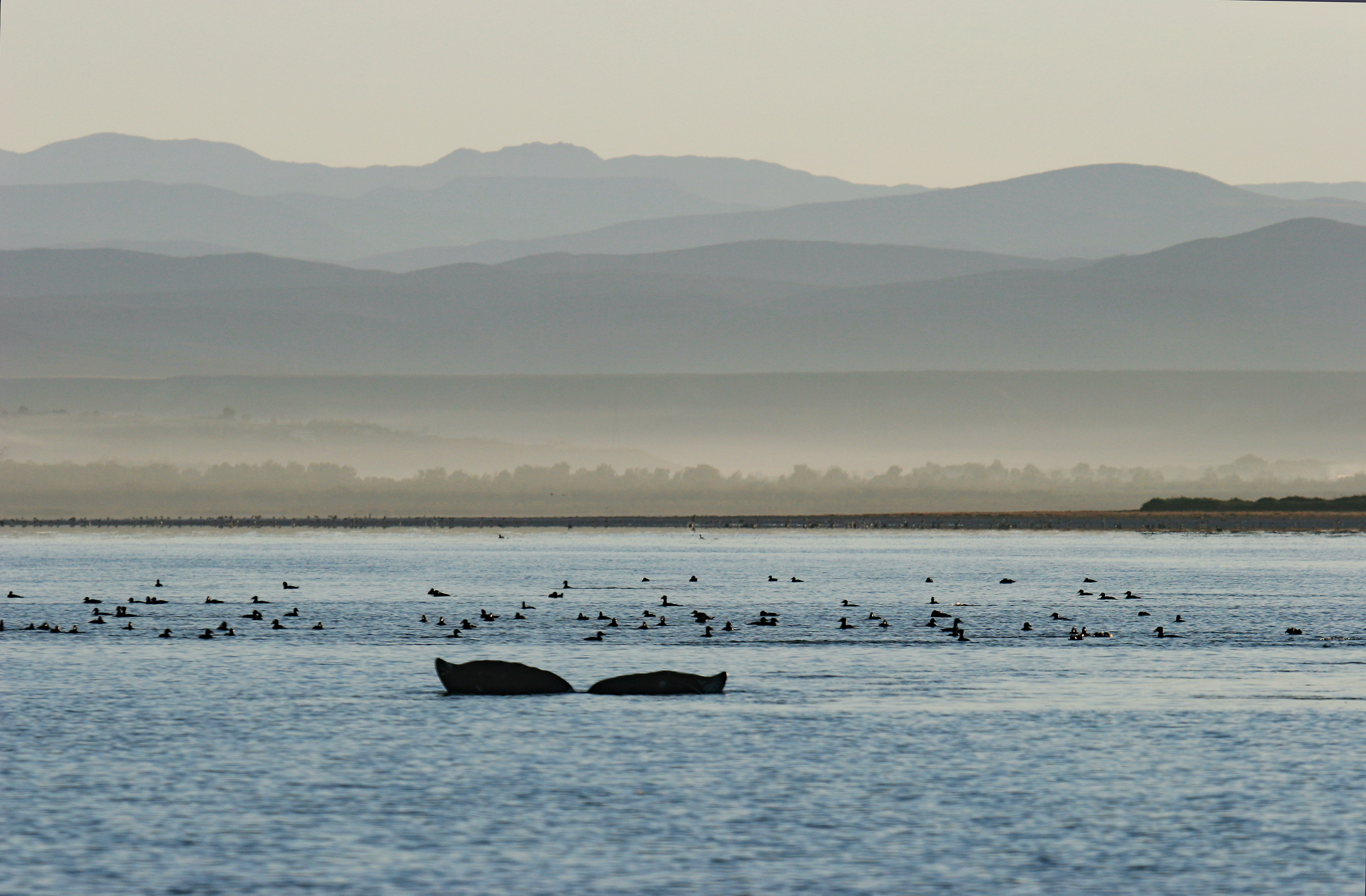 Gray whale and surf scoters, San Quintin, Baja