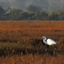 Birders will find California brown pelicans, great egrets (pictured above), marsh wrens, great blue herons, sparrows, and double-crested cormorants year-round at Carpinteria Salt Marsh Reserve in Santa Barbara, California.