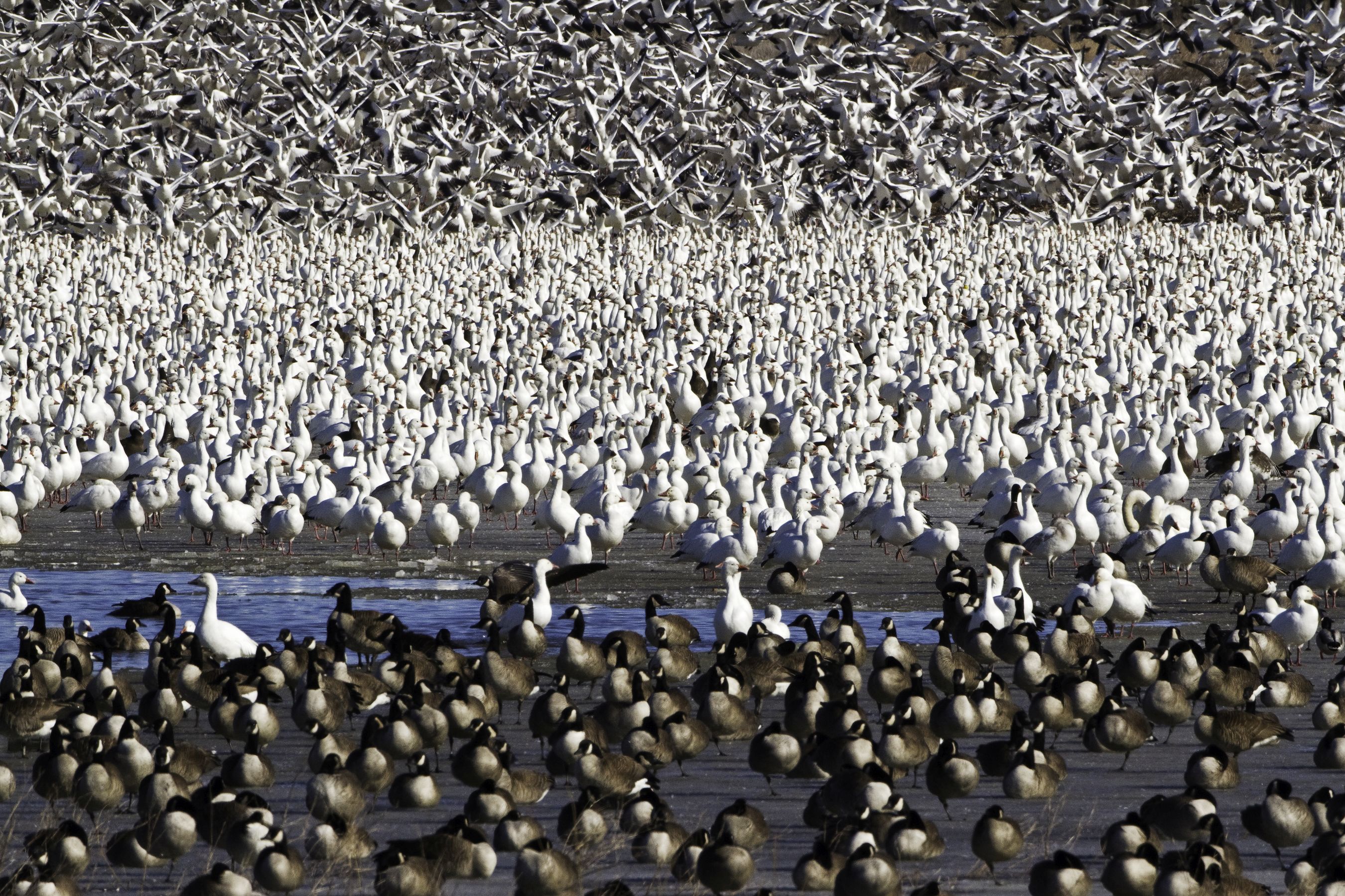 Great flocks of Canada geese and snow geese gather in the wetlands of Blackwater National Wildlife Refuge on Maryland’s Eastern Shore. The refuge wetlands are fed by the Blackwater River.