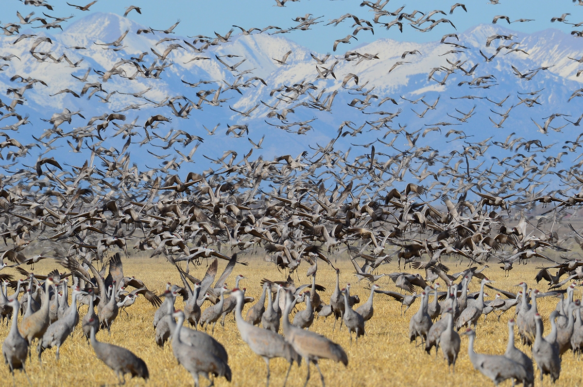 Greater sandhill cranes fill the land and air at Monte Vista National Wildlife Refuge in Colorado. Photo by Kate Miyamoto/USFWS
