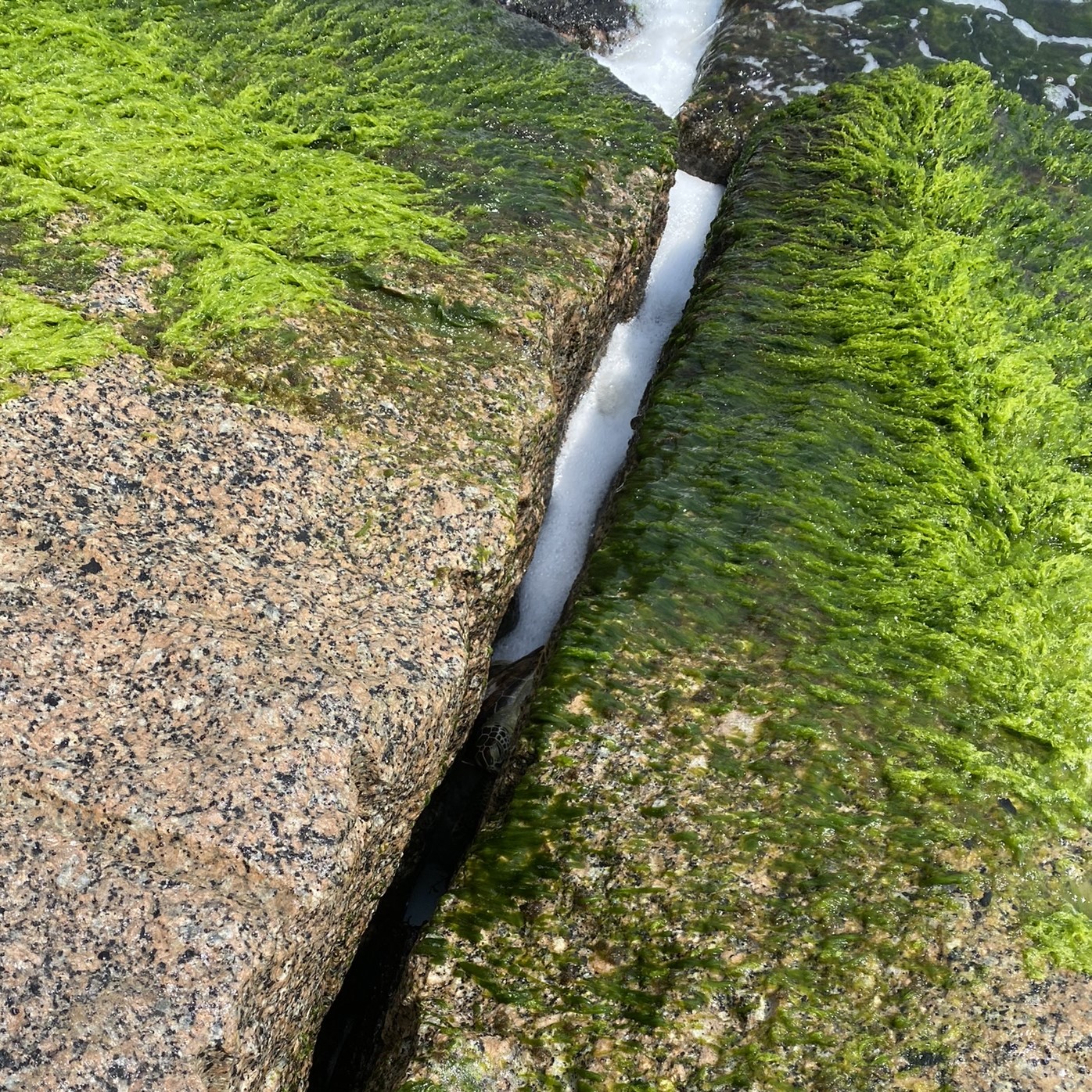 A juvenile green sea turtle trapped in jetty rocks on the Texas coast.