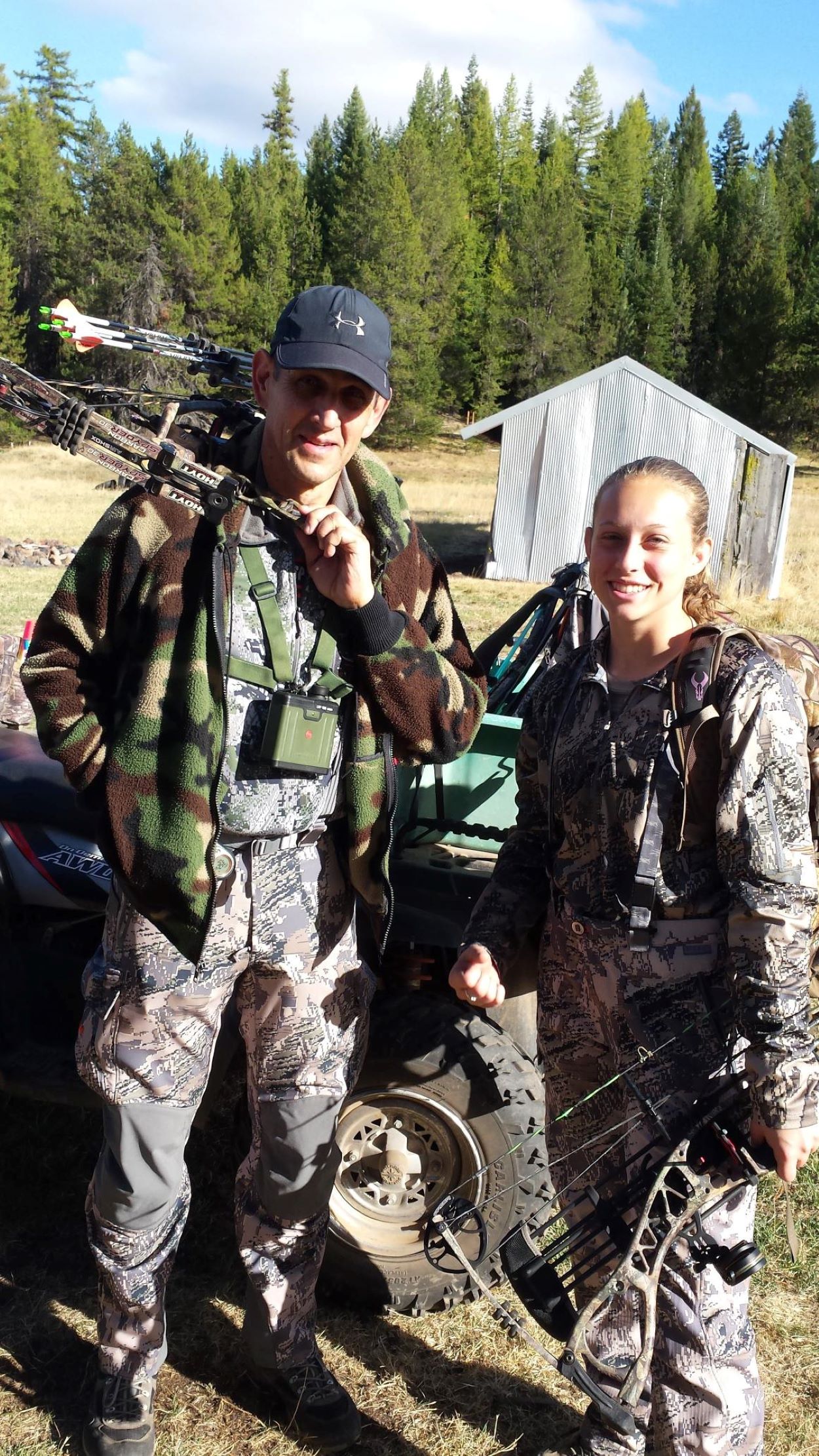 Emmett Walker, a hunter in eastern Oregon, stands with his daughter during a bow hunting trip.