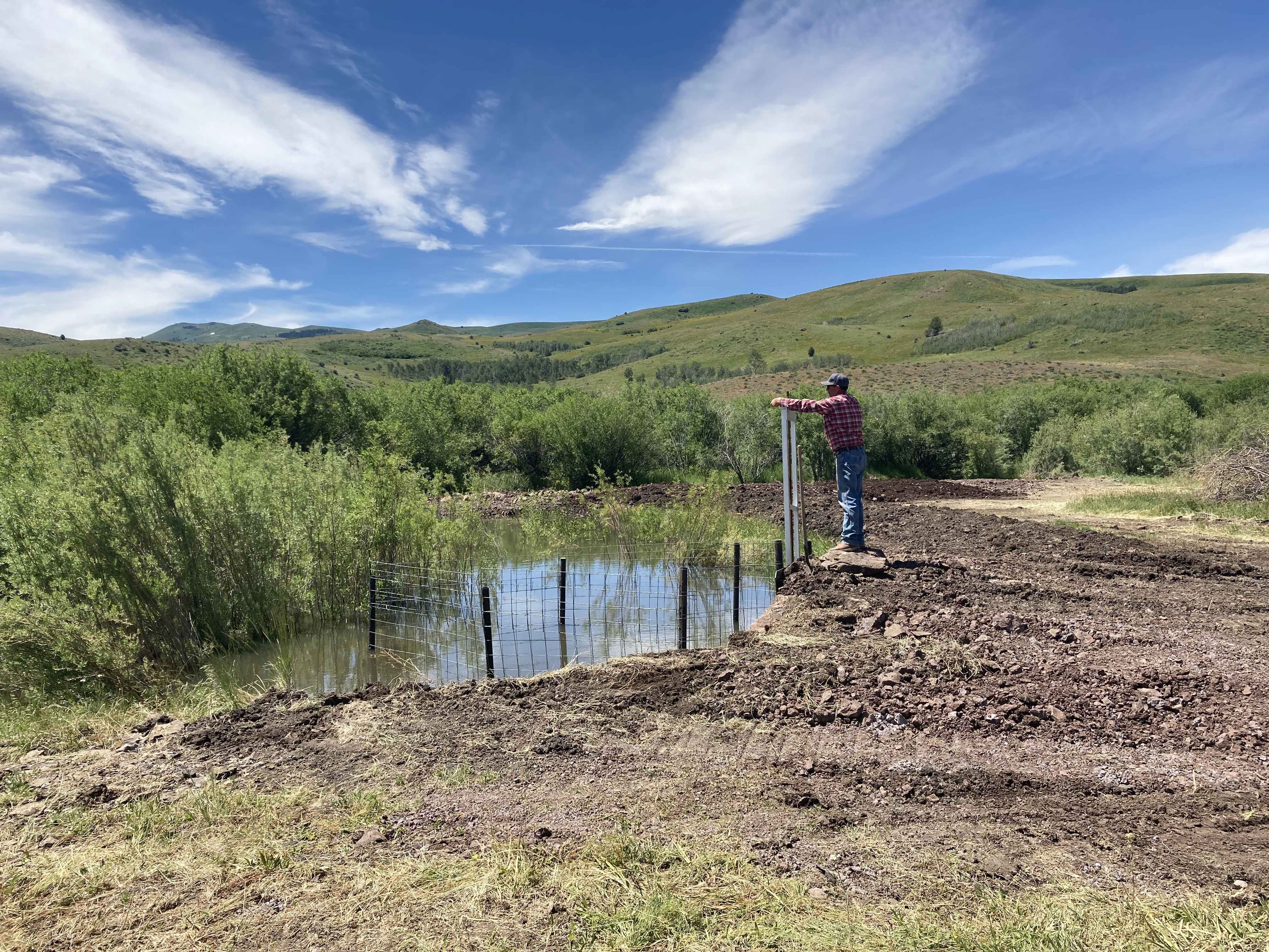 Rancher Tony Richards stands at a new headgate that allows him to better control how much water he diverts from Succor Creek to spread out over Chipmunk Meadows in early July of 2022. Photo courtesy of Brenda Richards.