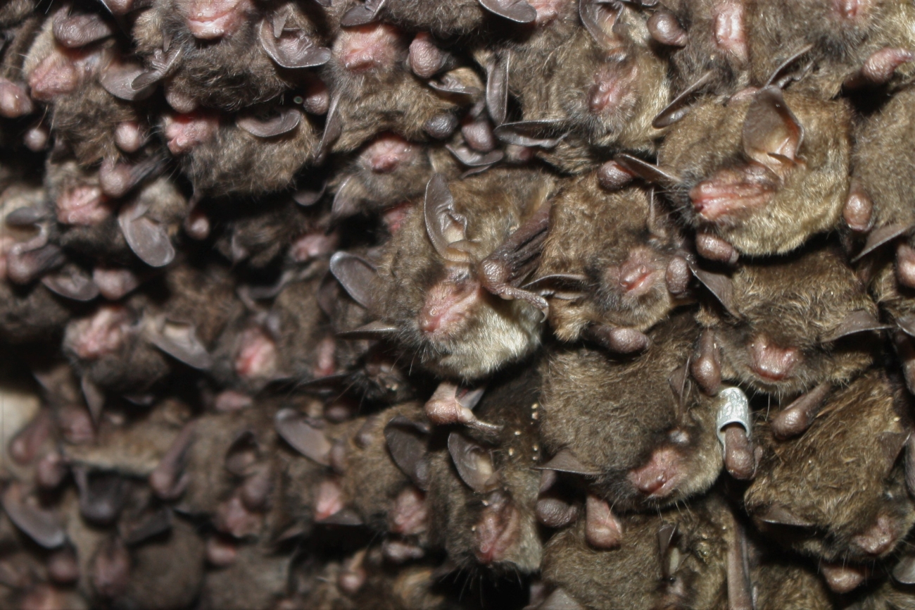 A cluster of endangered Indiana bats.