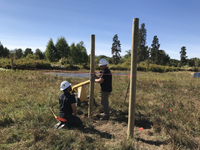 Mid Columbia Fisheries Enhancement Group restoration crew installing elk fencing.