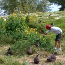 Volunteers remove invasive Verbesina encelioides (golden crownbeard) plants at Midway Atoll National Wildlife Refuge in the Pacific.