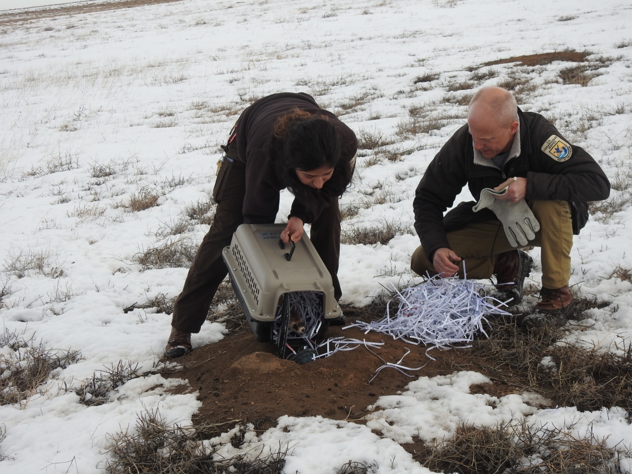 Isis Rivera Lopez releases an endangered black-footed ferret into the wild.