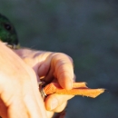 Biological Science Technicians Anthony Fornes placing an aluminum ID band on a Mallard drake at J. Clark Salyer National Wildlife Refuge