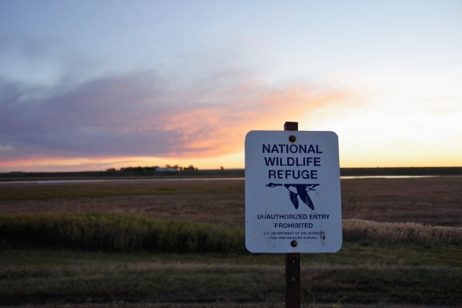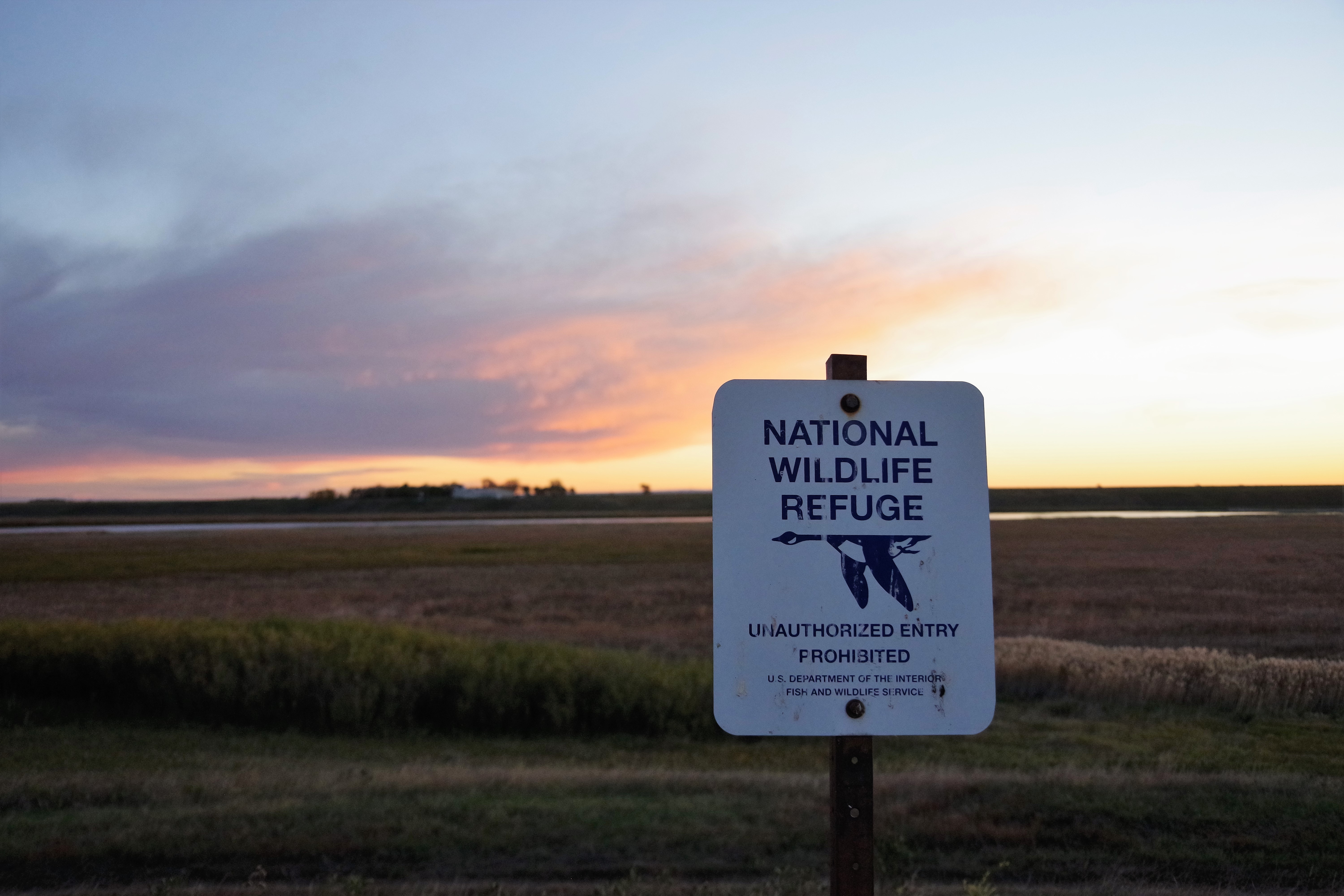 J Clark Salyer NWR Refuge Boundary Sign at Sunrise.JPG