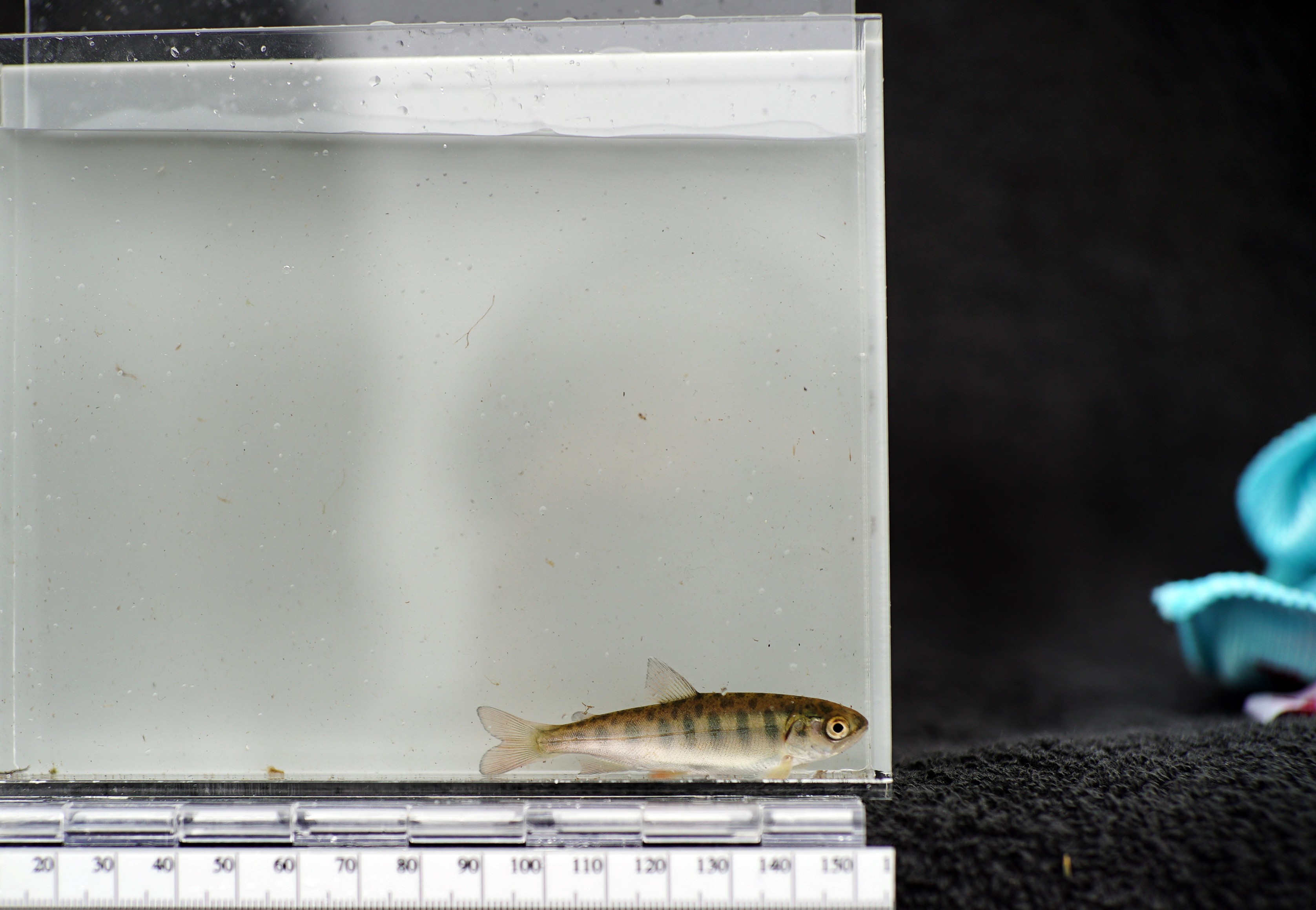 A juvenile Coho Salmon caught behind an off-channel Kwethluk River beaver dam.