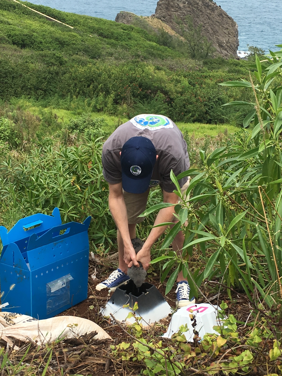 After a Newell’s shearwater chick was placed in it’s new home, the lid was placed on their burrow.