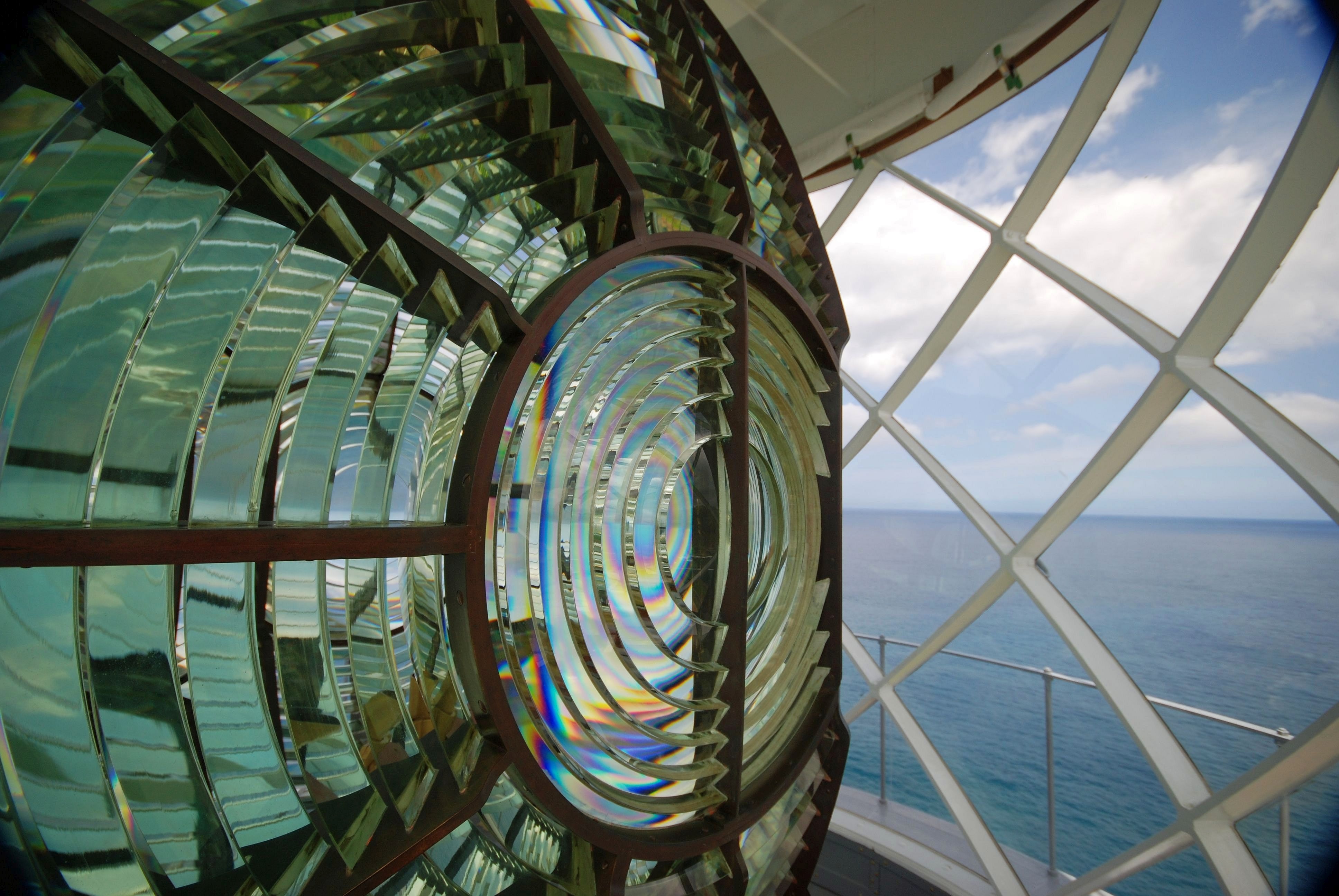Daniel K. Inouye Kilauea Point Lighthouse at Kilauea Point National Wildlife Refuge in Hawaii sits on the northernmost point of Kauai. The lighthouse was built in 1913 as a navigational aid for commercial shipping between Asia and Hawaii. The original lens was designed by French physicist Augustin-Jean Fresnel.