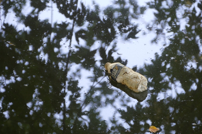 A discarded plastic water bottle floats in the marsh at John Heinz National Wildlife Refuge at Tinicum in Philadelphia.