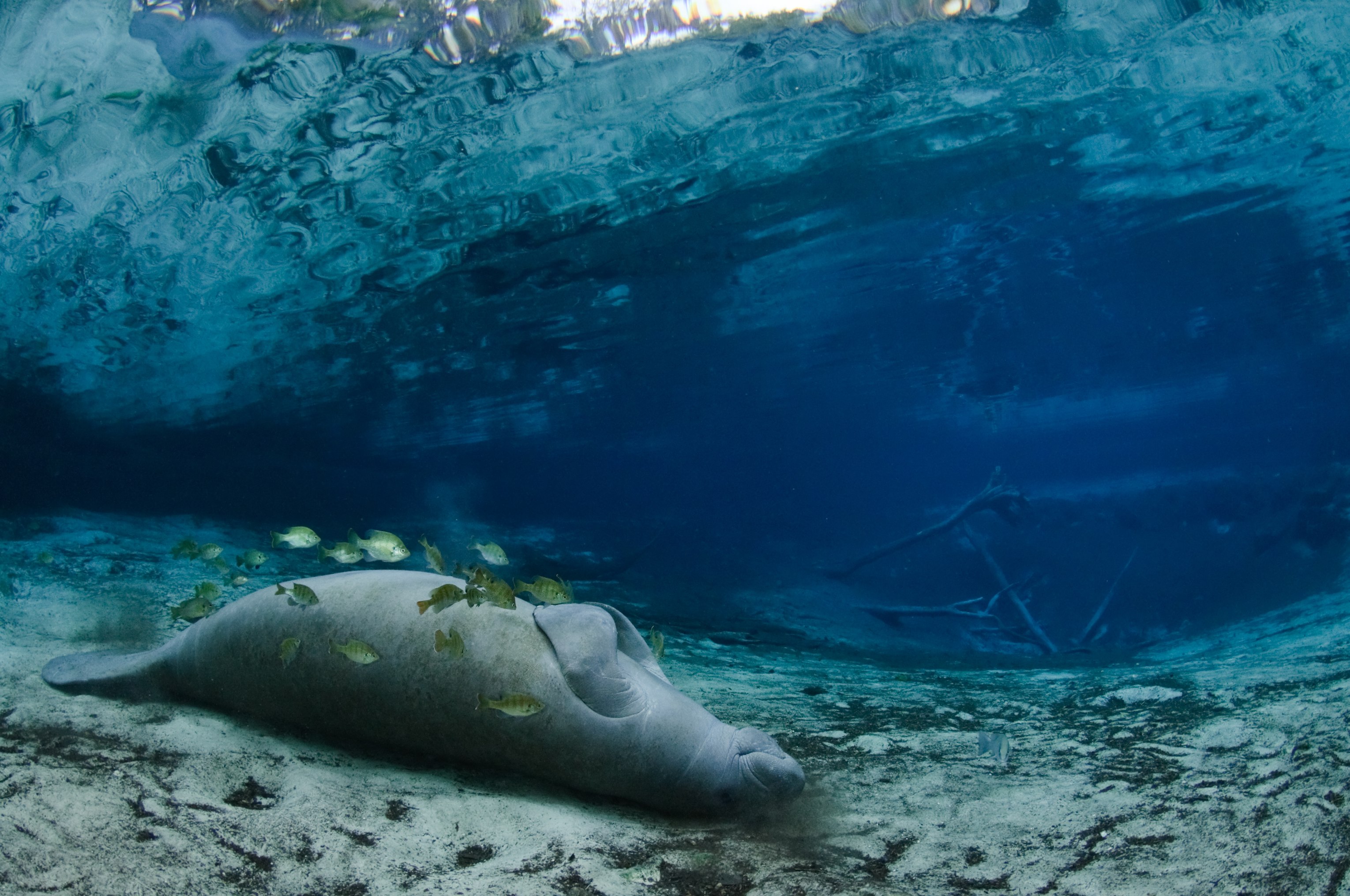 Manatee resting in the warm waters of Three Sisters Springs
