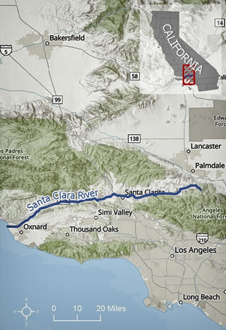 A map of the Santa Clara River in Los Angeles and Ventura counties