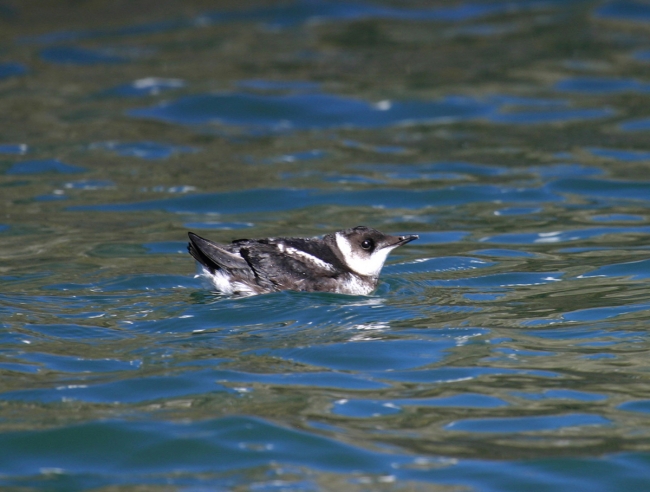 A marbled murrelet floats on the water. Image taken from USFWS Pacific Region Flickr page.