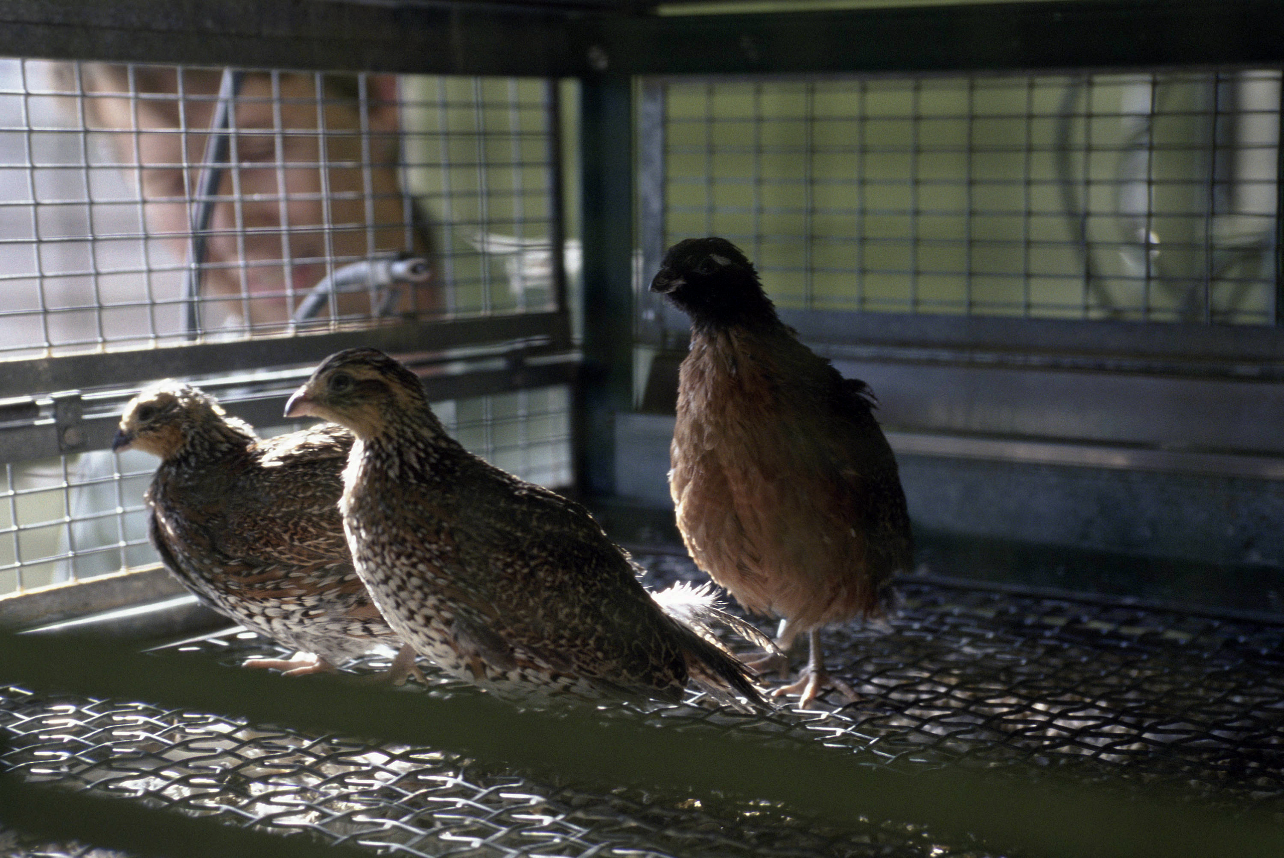 Caged Masked bobwhite at the captive breeding facility on Buenos Aires National Wildlife Refuge.