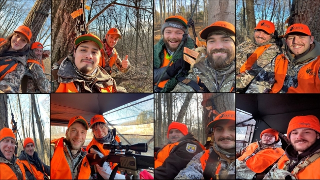 Mentees and Mentors in the Field to Fork mentored rifle deer hunt pose for a selfie in their stands at Cherry Valley National Wildlife Refuge in December 2024.