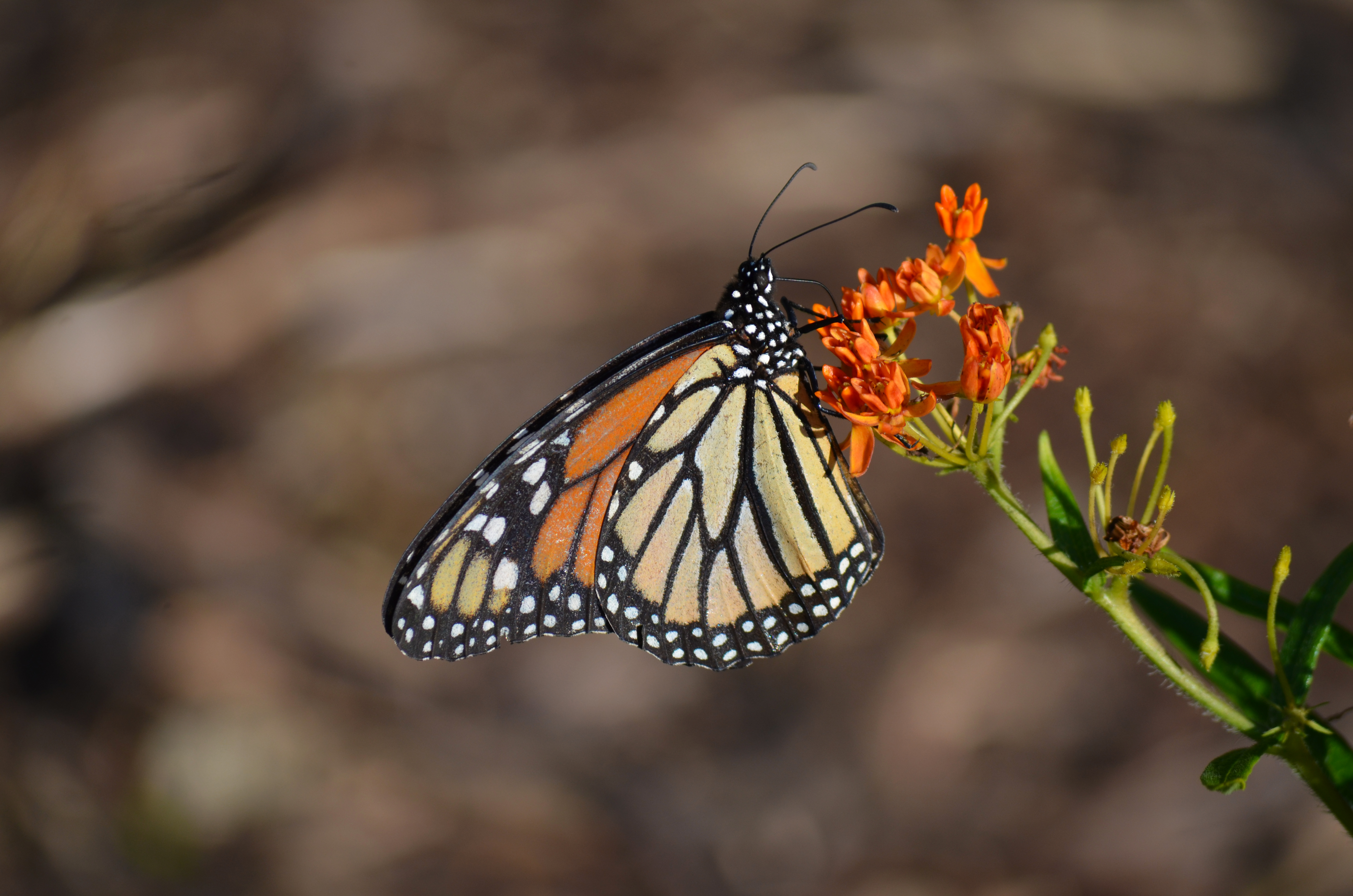 A monarch butterfly sips nectar from a flower.