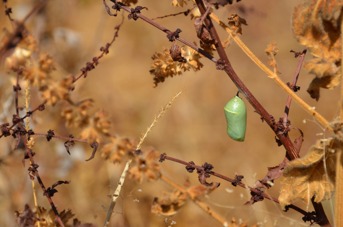 The pollinator garden at Beale Air Force Base in northern California provides enough food and habitat to support monarchs at all life phases, including the chrysalis phase. Credit: USFWS