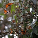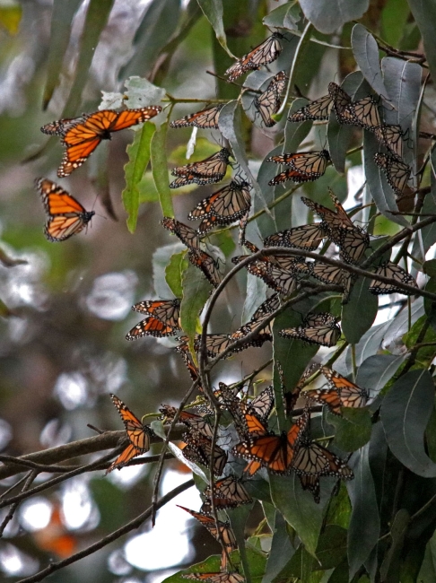 Monarch butterflies form new cluster on a nearby Eucalyptus tree after winds shift and disturb their site at the Monarch Butterfly Sanctuary in Pacific Grove, Calif. If environmental conditions like rain or wind change for the worst, monarch butterflies will fly to a new location where they can be protected by tree-cover.