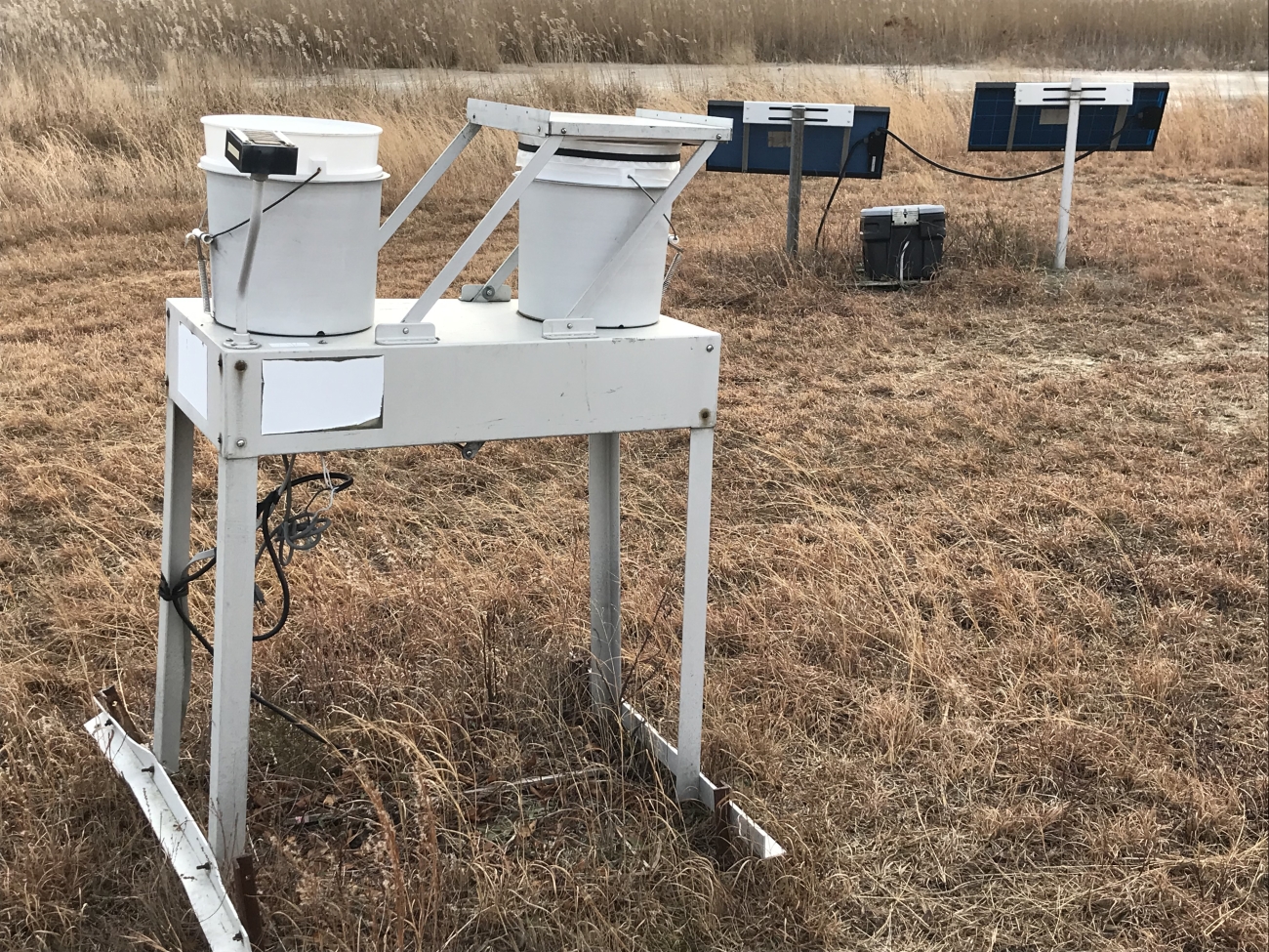 An NADP (National Atmospheric Deposition Program) Station at Edwin B. Forsythe National Wildlife Refuge in New Jersey monitors long-term weather and climate data to assess policies aimed at reducing air pollution and the ecological impacts of atmospheric deposition (like acid rain, mercury, and reactive nitrogen).