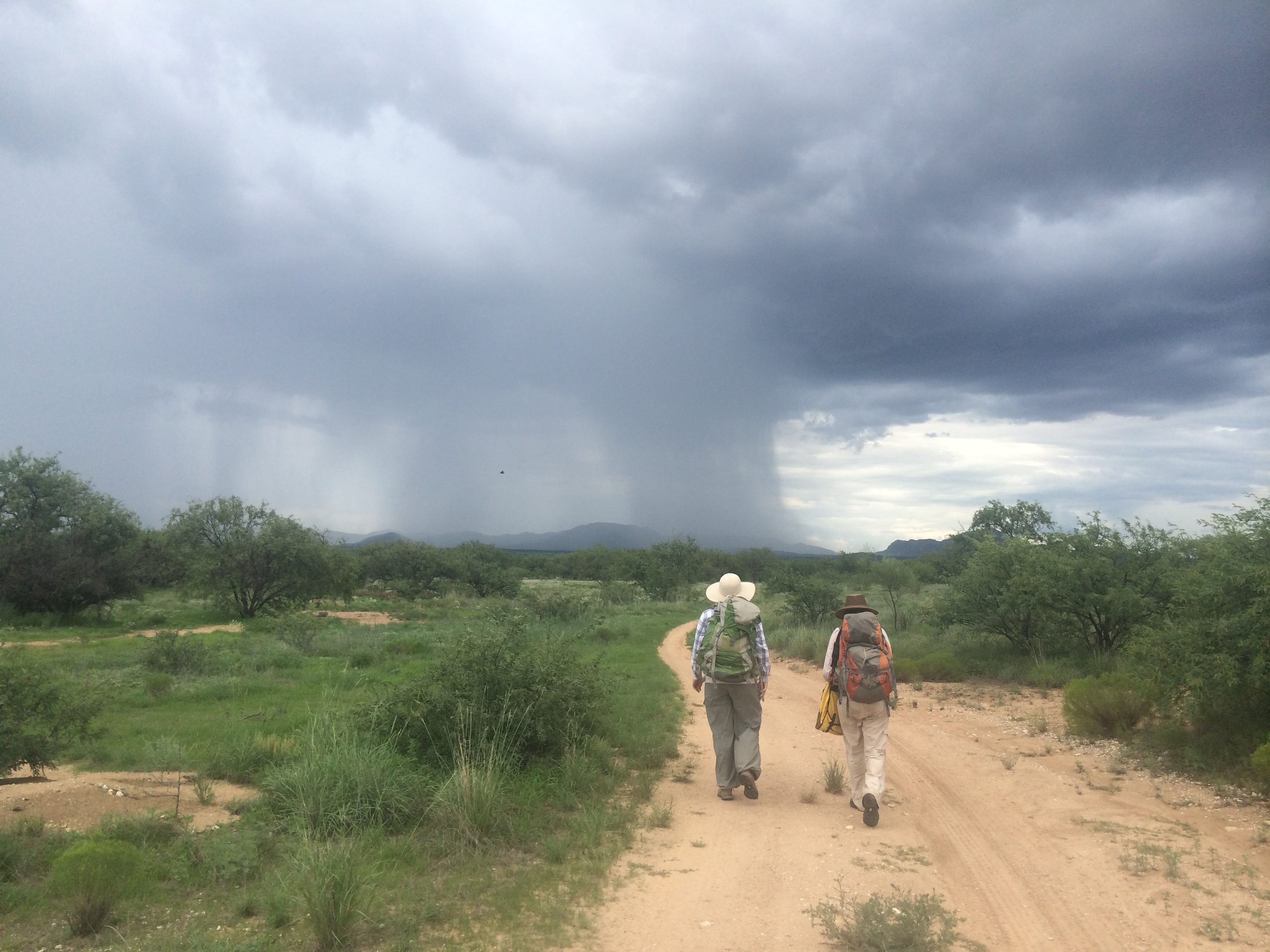 Monsoon rainstorm over a mesquite savannah in southeastern Arizona.