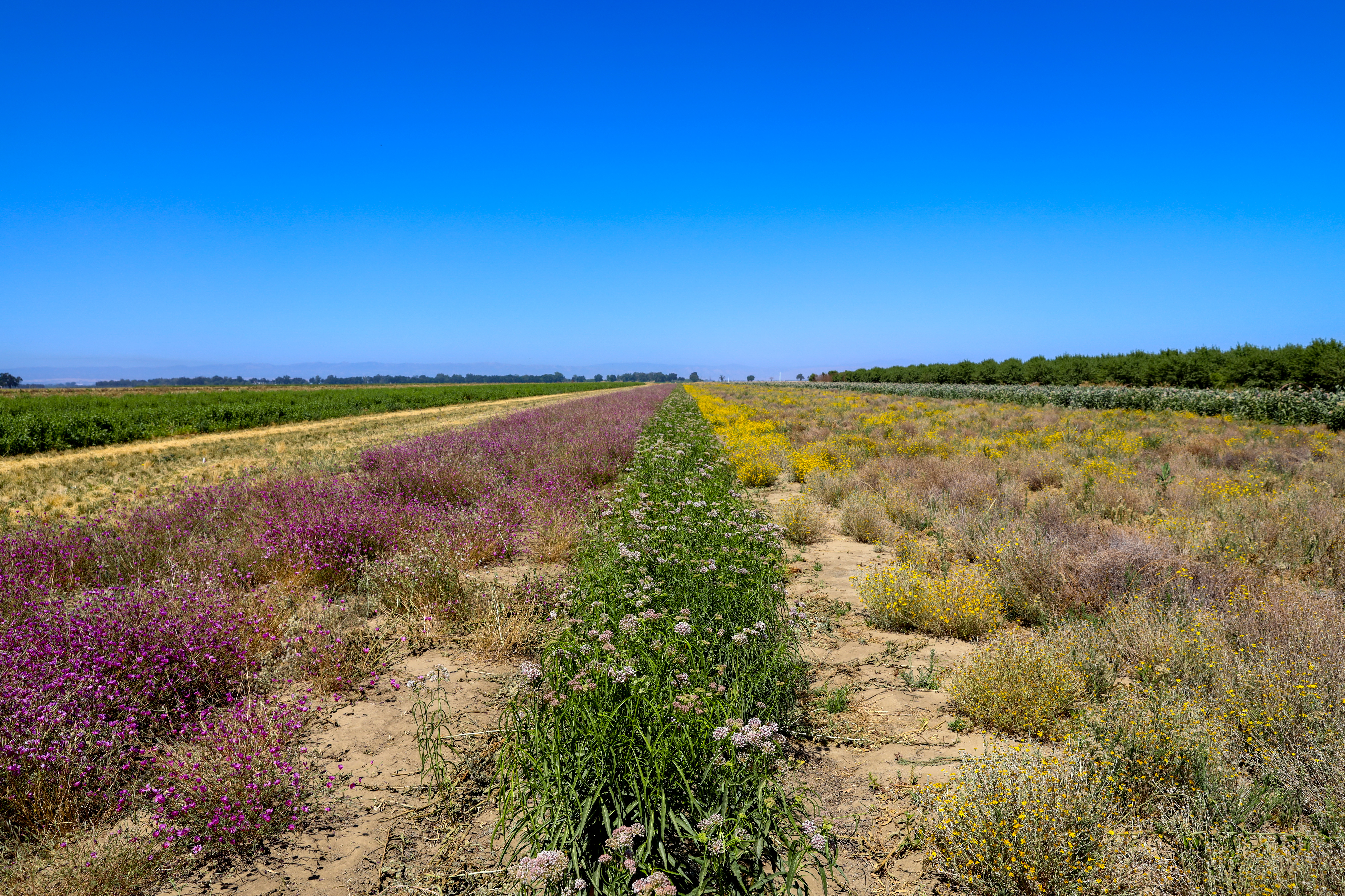 Rows of native plants being grown out at Heritage Farms in northern California.