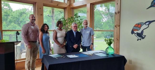 From left to right: Brandon Wear, Laurel Creech, Monique Odom, Mayor John Cooper, and Dr. Bill Uihlein designate Nashville as the Service’s 31st Urban Bird Treaty city.